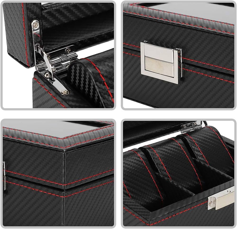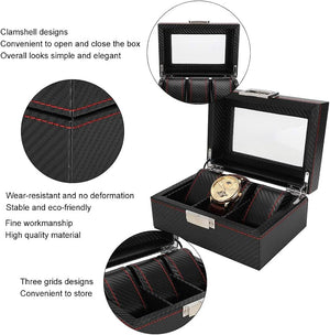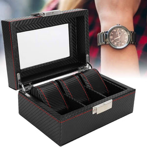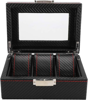 3 Slot Watch Box Organizer Carbon Fiber Look PU Leather