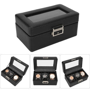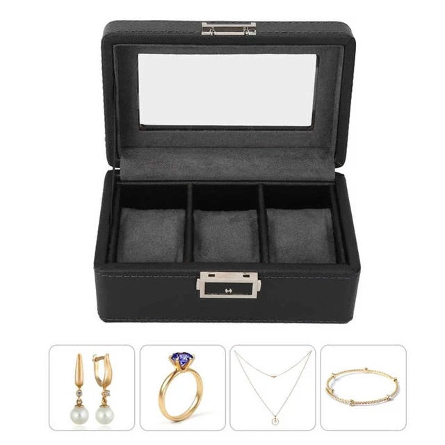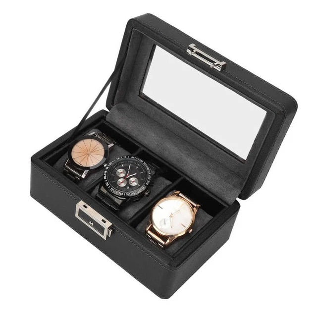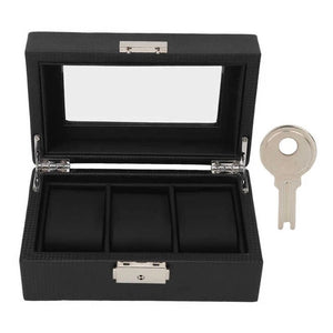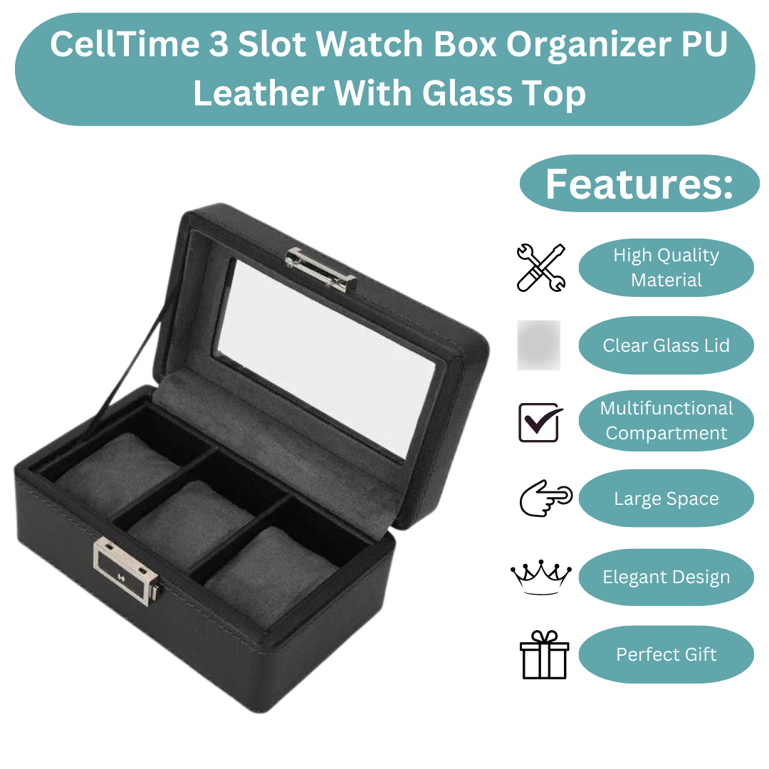 - 1 x 3 Slot Watch Box Organizer PU Leather With Glass Top