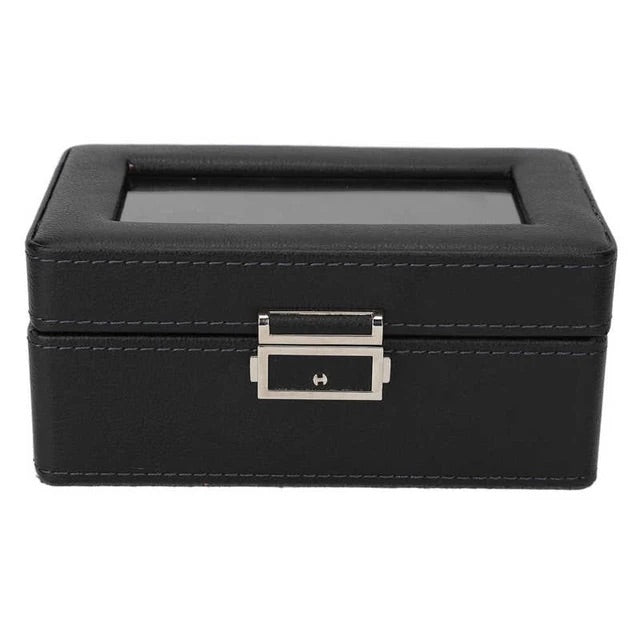 Transparent window enables a stylish display of watches on a dressing table or in a shop.