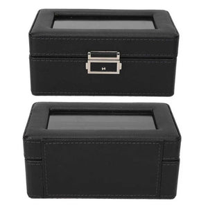 3 Slot Watch Box Organizer PU Leather With Glass Top