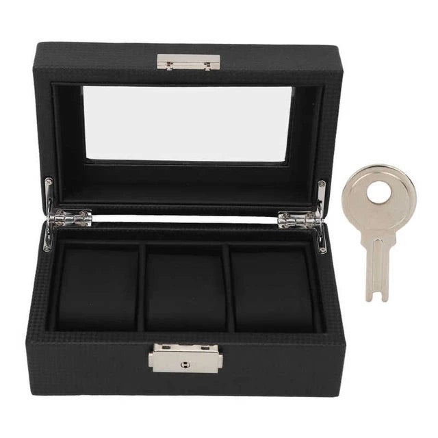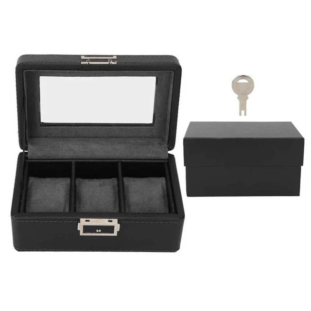 Introducing the 3 Slot Watch Box Organizer PU Leather with Glass Top, where luxury meets functionality