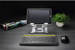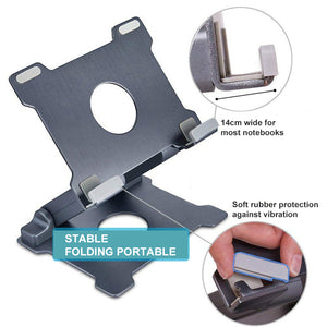 The CellTime™ Aluminium Height Adjustable Tablet Stand is a compact foldable aluminium solution for your desktop. Made of premium aluminium, sturdy grips it holds iPads & tablets comfortably.