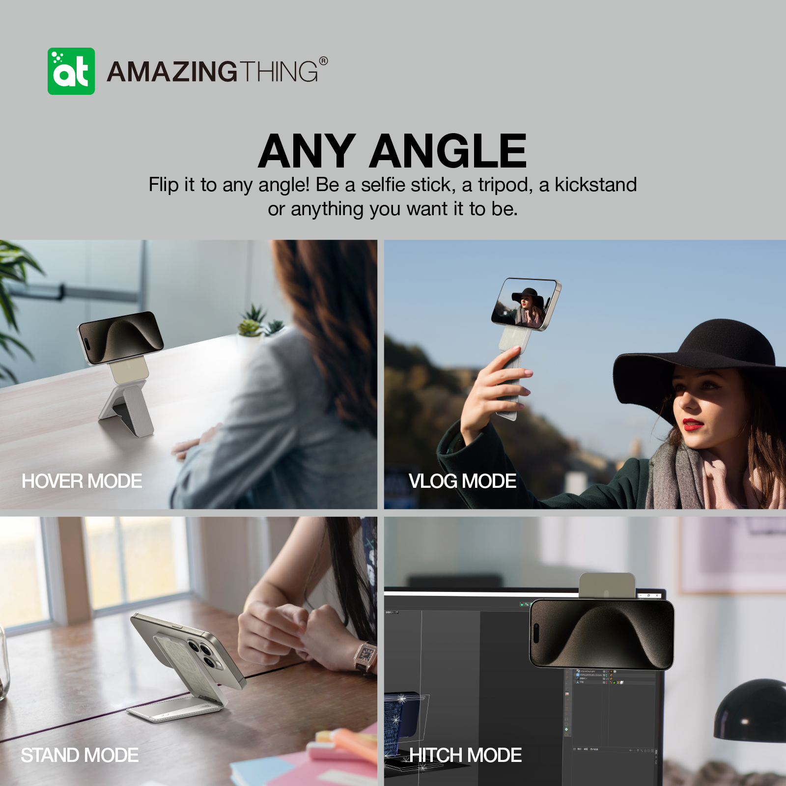 The AMAZINGTHING Glamour LinkMagSafe Wallet Grip Stand Gadget is the ultimate 3-in-1 magnetic gadget - a stylish fusion of selfie stick, multi-angle grip stand, and MagSafe wallet. Perfectly crafted for creators, professionals, and minimalists, this ultra-slim tool enhances your mobile experience with seamless transitions between viewing, shooting, and storage - all in one sleek accessory.