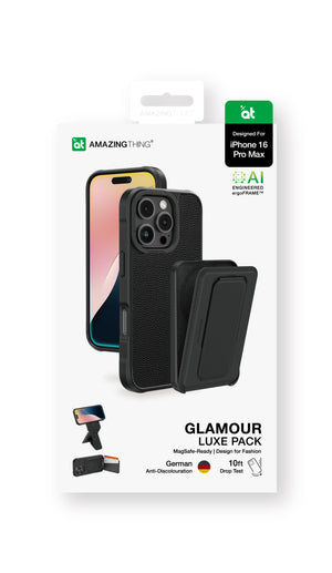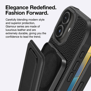 Step into the spotlight with the Glamour Mag iPhone 16/16 Plus/16 Pro/16 Pro Max Case Wallet Stand Set—crafted for those who crave both statement-making fashion and uncompromising durability. This case merges elegant design with advanced protection technologies like the Titan Defense System, X-Cushion Pro III™, and MagSafe-ready alignment, creating a cover that’s as polished as it is protective.