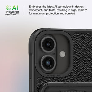 📐ErgoFrame™ – Form-Fitting Comfort & Control: The AI-designed ergoFRAME™ provides a perfect grip and snug fit around your iPhone 16/16 Plus/16 Pro/16 Pro Max. With precise cutouts for all buttons and ports, this design delivers a smooth in-hand experience without adding unnecessary bulk.