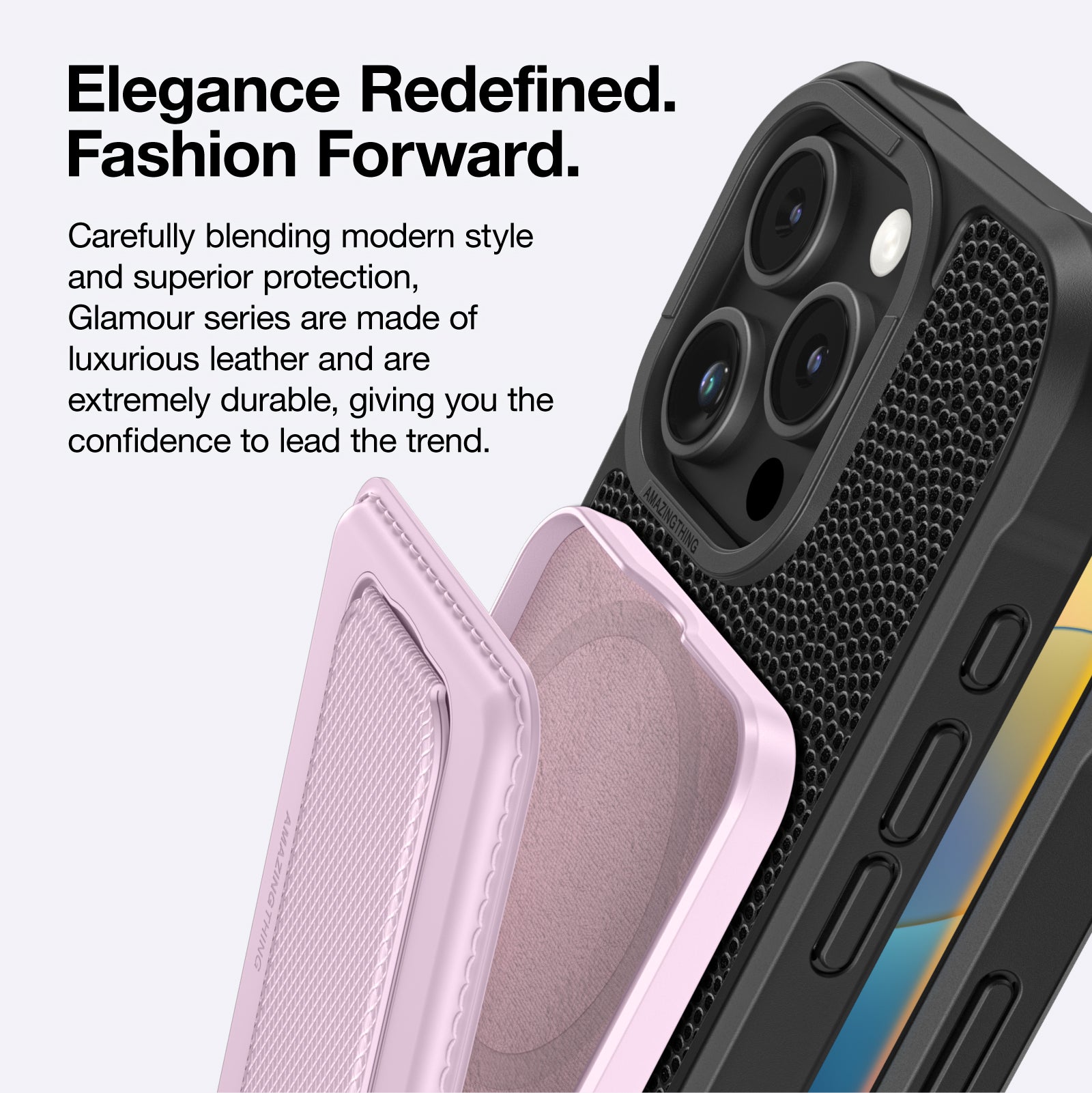 Elegant fabric-textured backplate for a premium look and enhanced grip