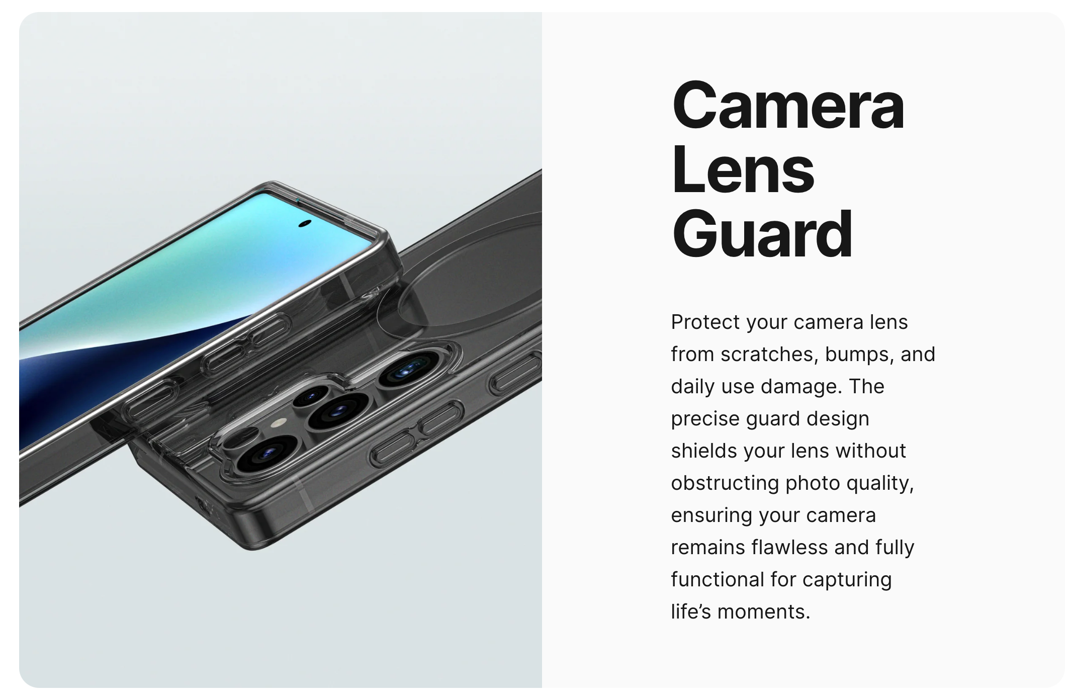 DefendEdge Camera Guard: Shield your Galaxy S25 / S25 Plus / S25 Ultra camera lens with precision. The elevated DefendEdge Camera Guard protects against scratches and cracks without affecting photo clarity-so you can capture life's best moments worry-free.
