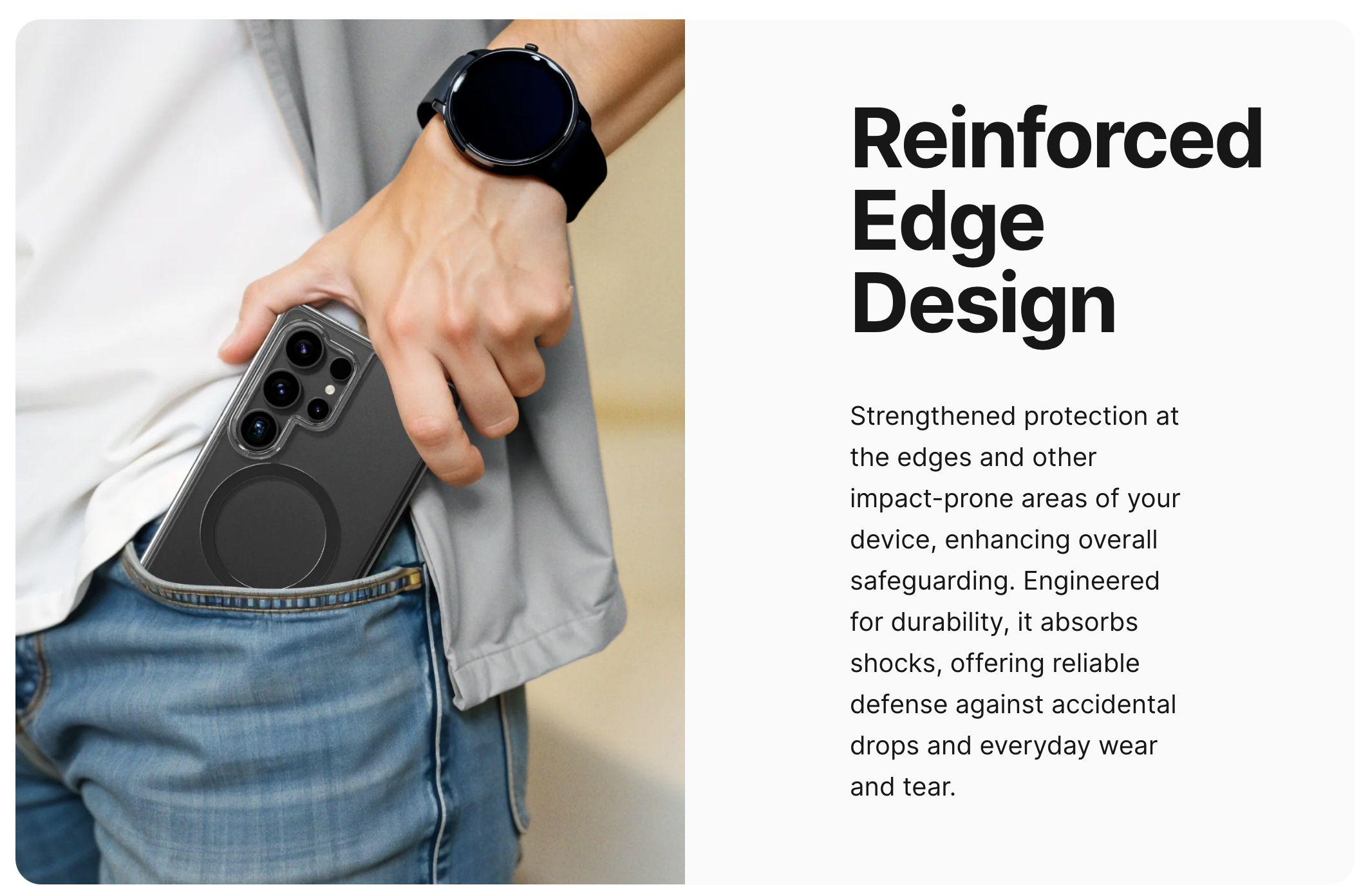 Reinforced Edge Design for Shock Absorption: Designed with shock-absorbing corners and reinforced edges, the Minimal Mag Case delivers dependable drop protection where it matters most-without adding unnecessary bulk.