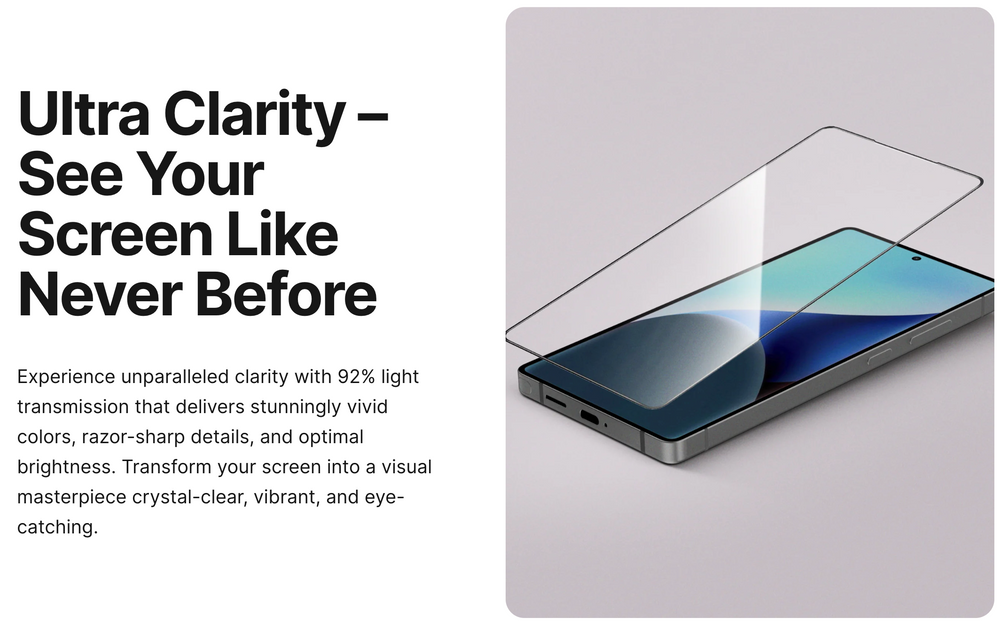 Clear version - for ultra clarity and vibrant visuals: Experience 92% light transmission that brings your Galaxy S25/ S25+/ S25 Ultra display to life with stunning brightness, true-to-life colors, and razor-sharp details. Ideal for content viewing, photography, and general daily use, the Clear version preserves your screen's brilliance while offering durable protection with zero compromise on visibility.