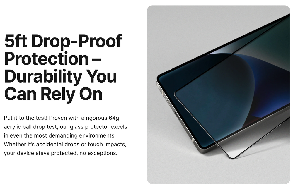 - Drop-tested from 5 ft with 64g acrylic ball for rugged durability