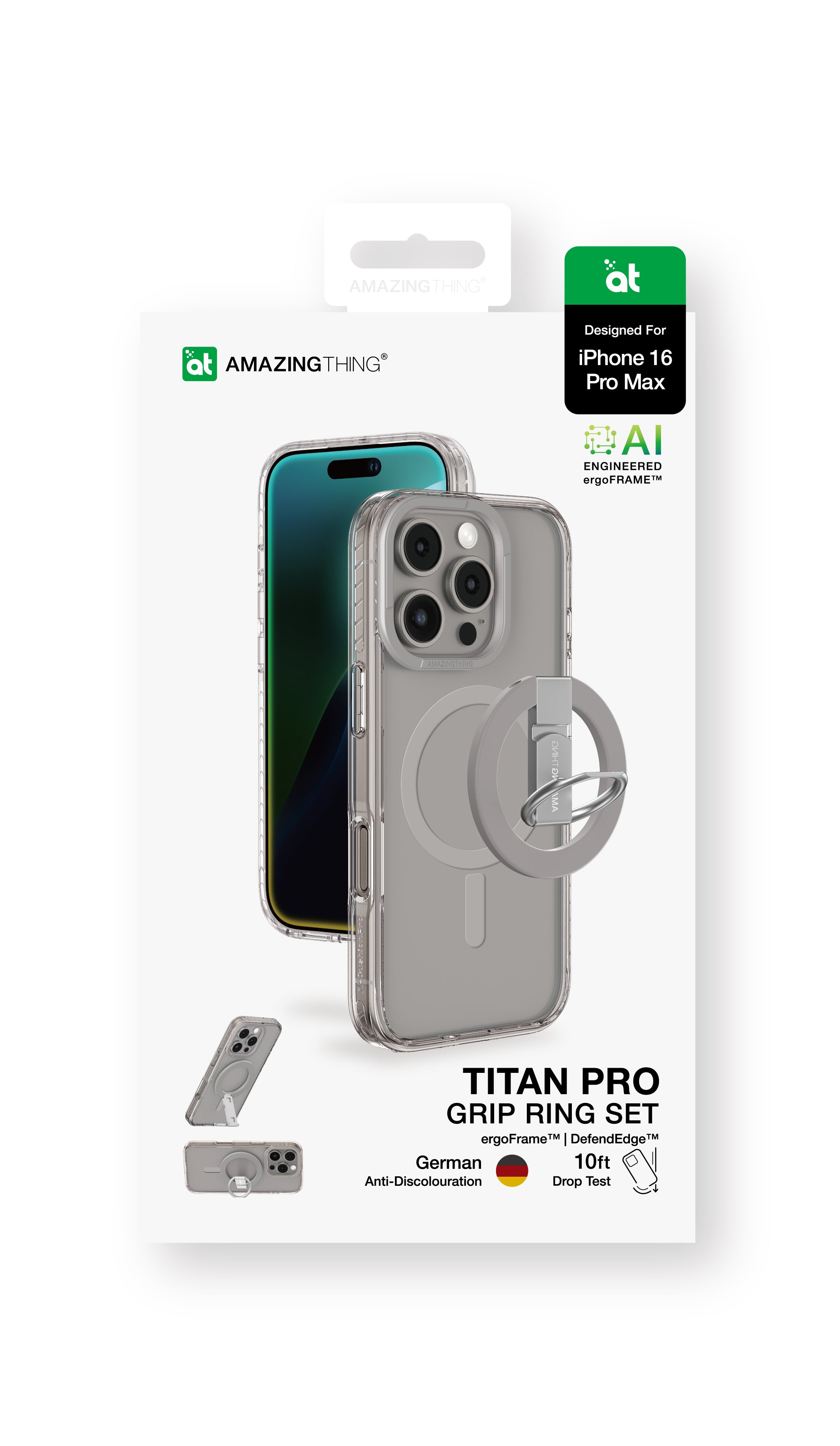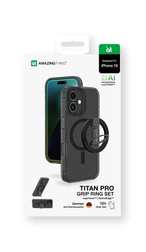 The AMAZINGTHING Titan Pro Mag Grip Ring Set iPhone 16/ 16Plus /16 Pro/ 16 Pro Max Case is engineered for those who demand superior defence and functional versatility. Powered by Titan Pro Defence, this iPhone 16/ 16Plus /16 Pro/ 16 Pro Max cover combines military-grade durability with a refined, ergonomic design to offer next-level protection and an effortless user experience. Designed to absorb impact, enhance grip, and provide hands-free functionality, it redefines how you interact with your iPhone.