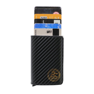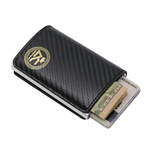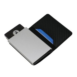 - The RFID card holder is made of aluminum-titanium alloy metal and PU leather material.