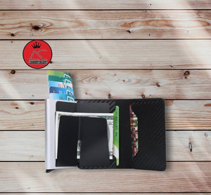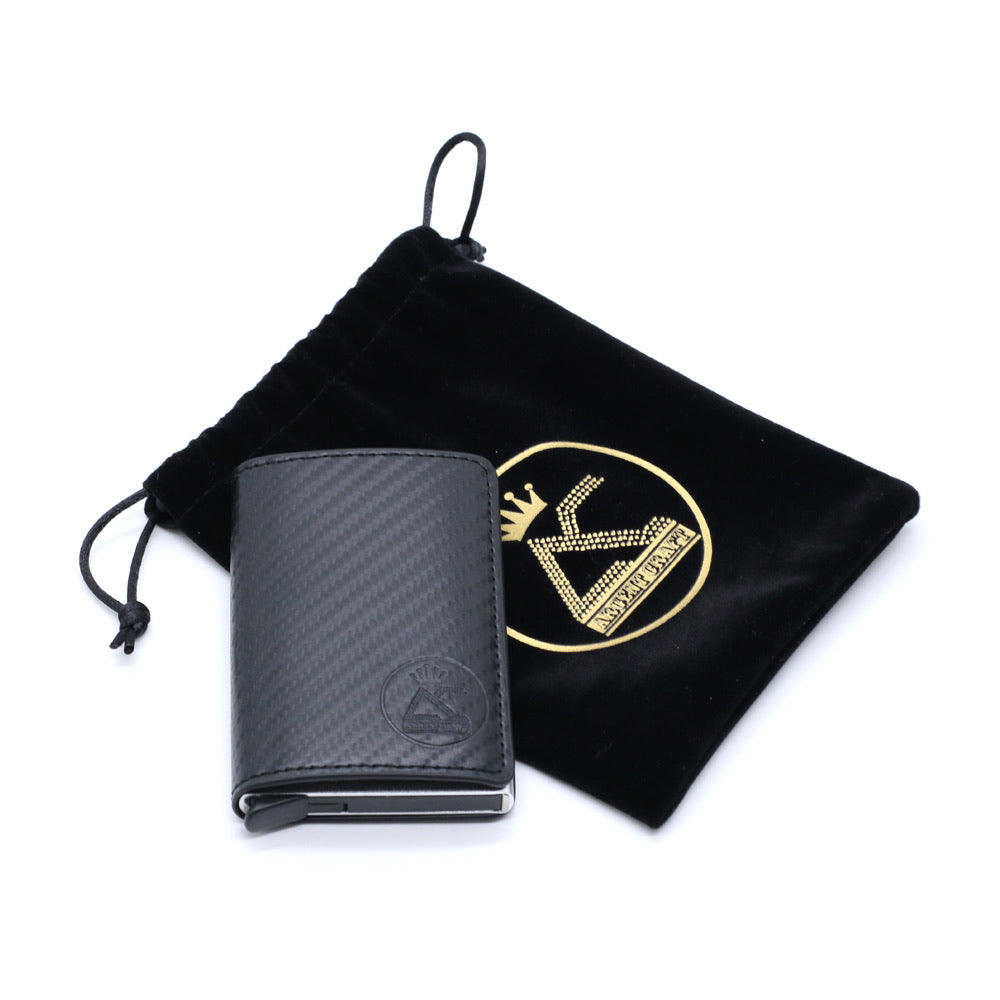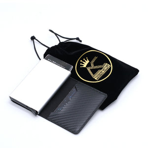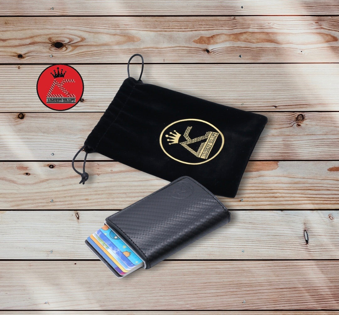 - The RFID card holder is made of aluminum-titanium alloy metal and PU leather material.