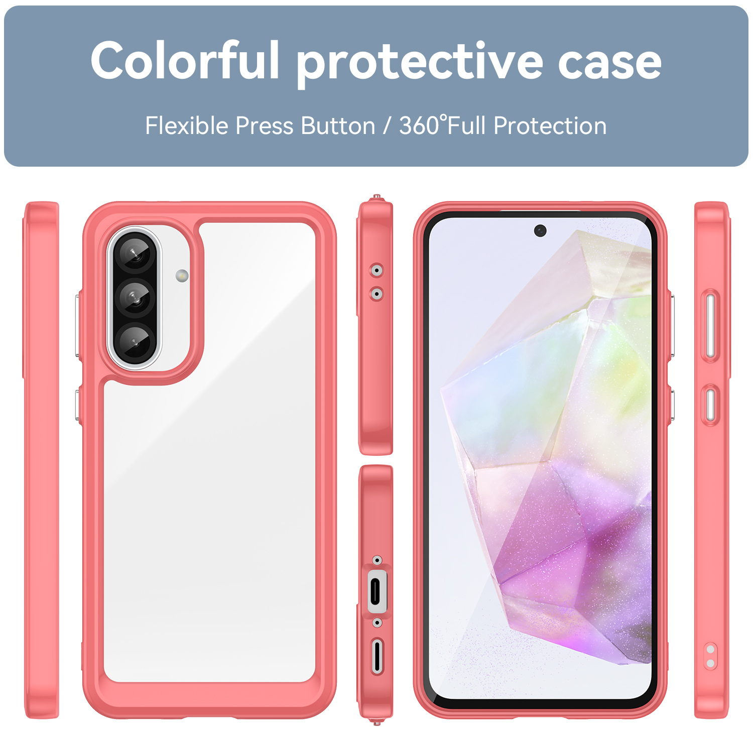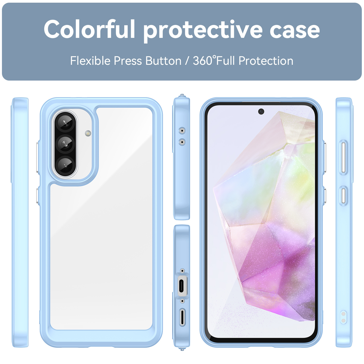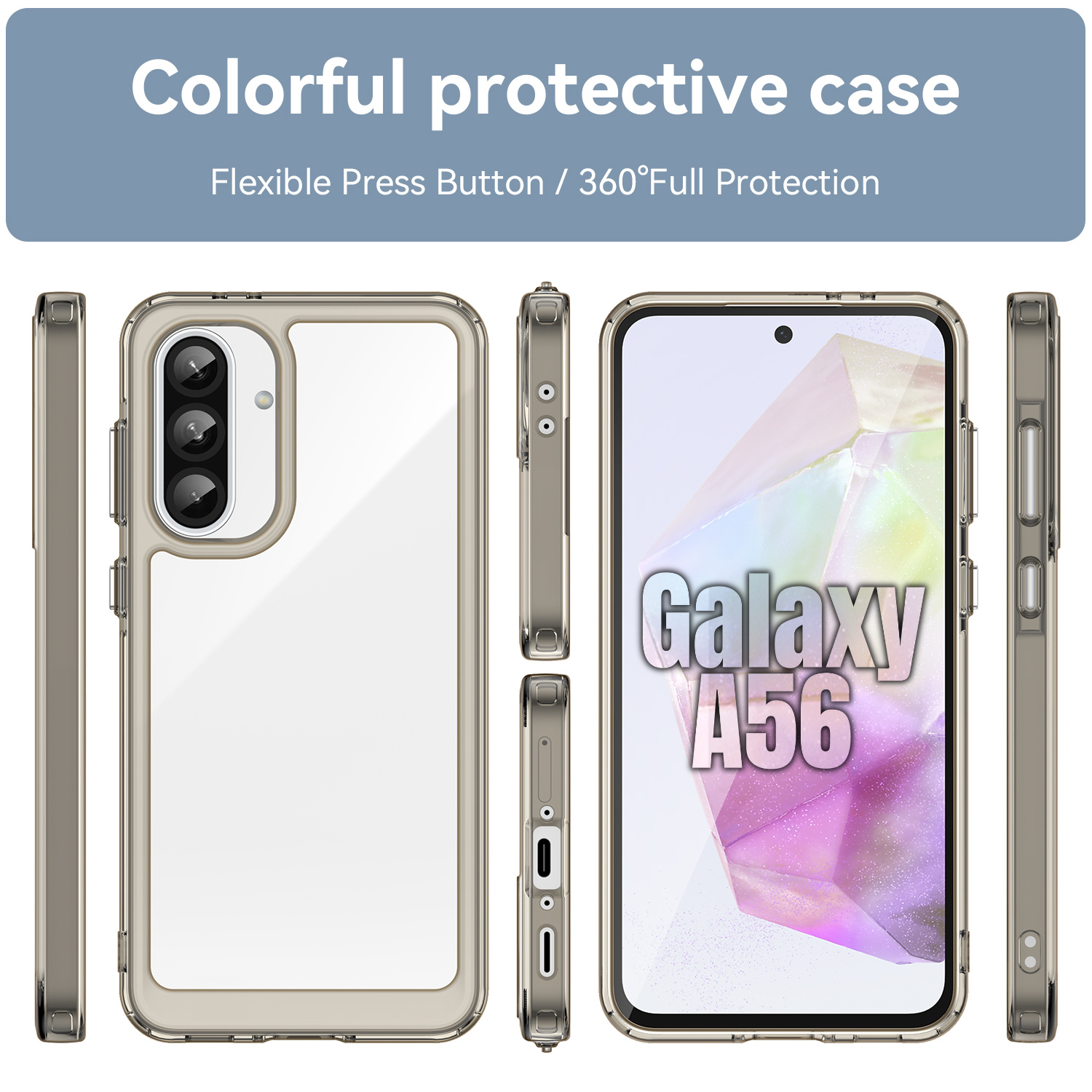 Eye-Catching Candy-Coloured Design: Immerse your smartphone in a burst of vibrant colours. The candy-coloured transparent design not only adds a delightful touch to your Galaxy A56 but also allows you to showcase its elegant design. Protect your phone while making a style statement. Stand out from the crowd with this trendy accessory.