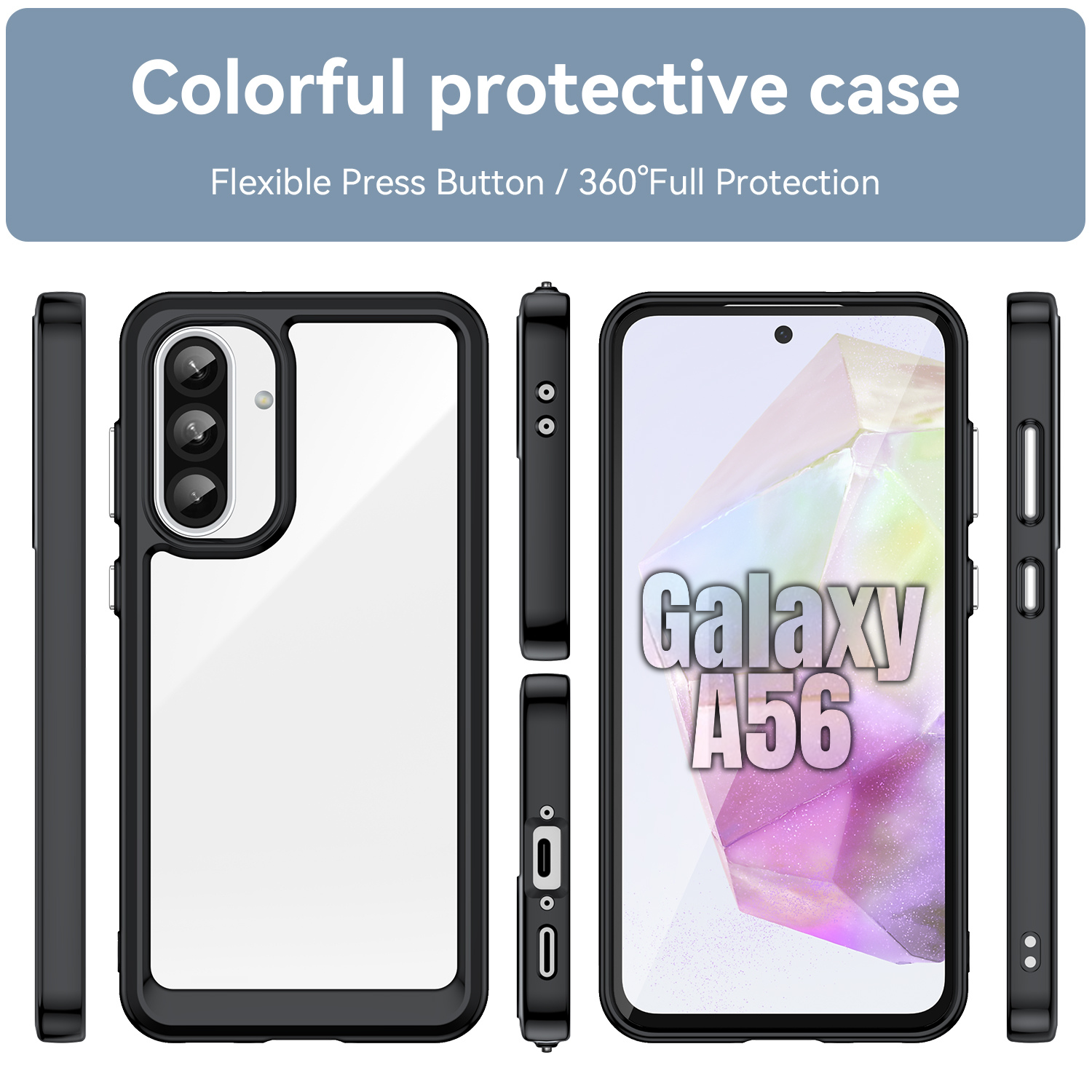 Compatible with Galaxy A56 : Tailored specifically for the Galaxy A56 , this cover ensures a perfect fit, allowing you to enjoy the full spectrum of its features while keeping your device shielded from the unexpected. Enjoy peace of mind knowing your device is protected by a case designed specifically for its model.