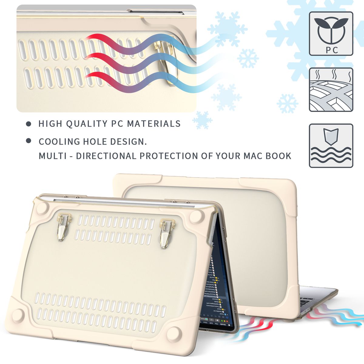 Engineered shock-absorbent beveled ridges design bumper heavy duty hard shell, provides full protection for your laptop against accidental scuffs, drops, and scratches. Fully vented for safe heat disbursement, fully access to all buttons and features.