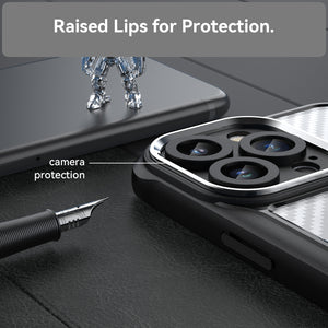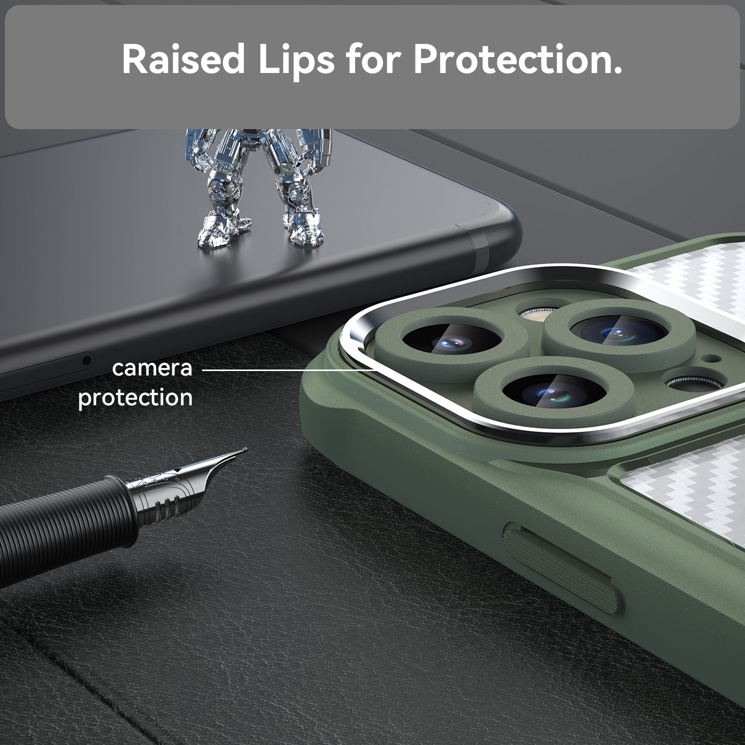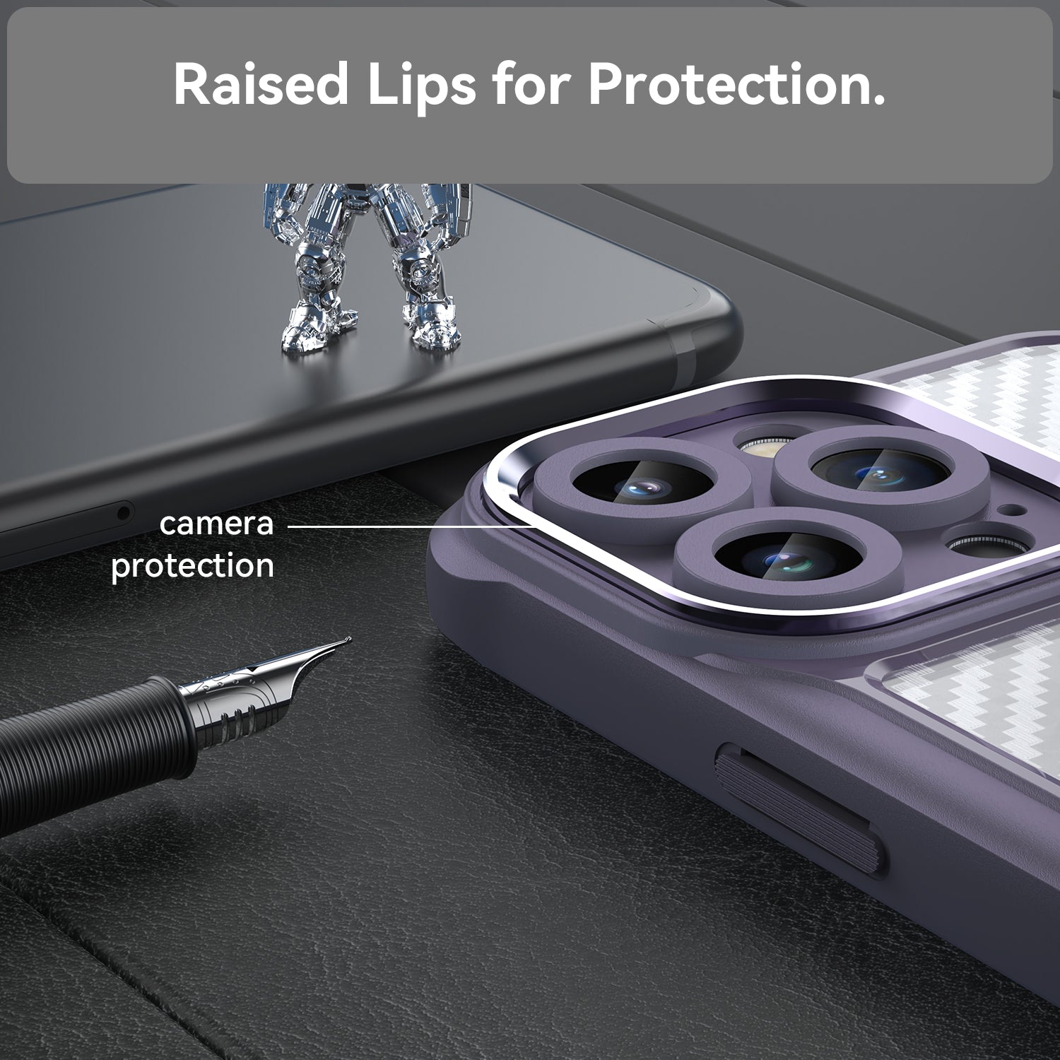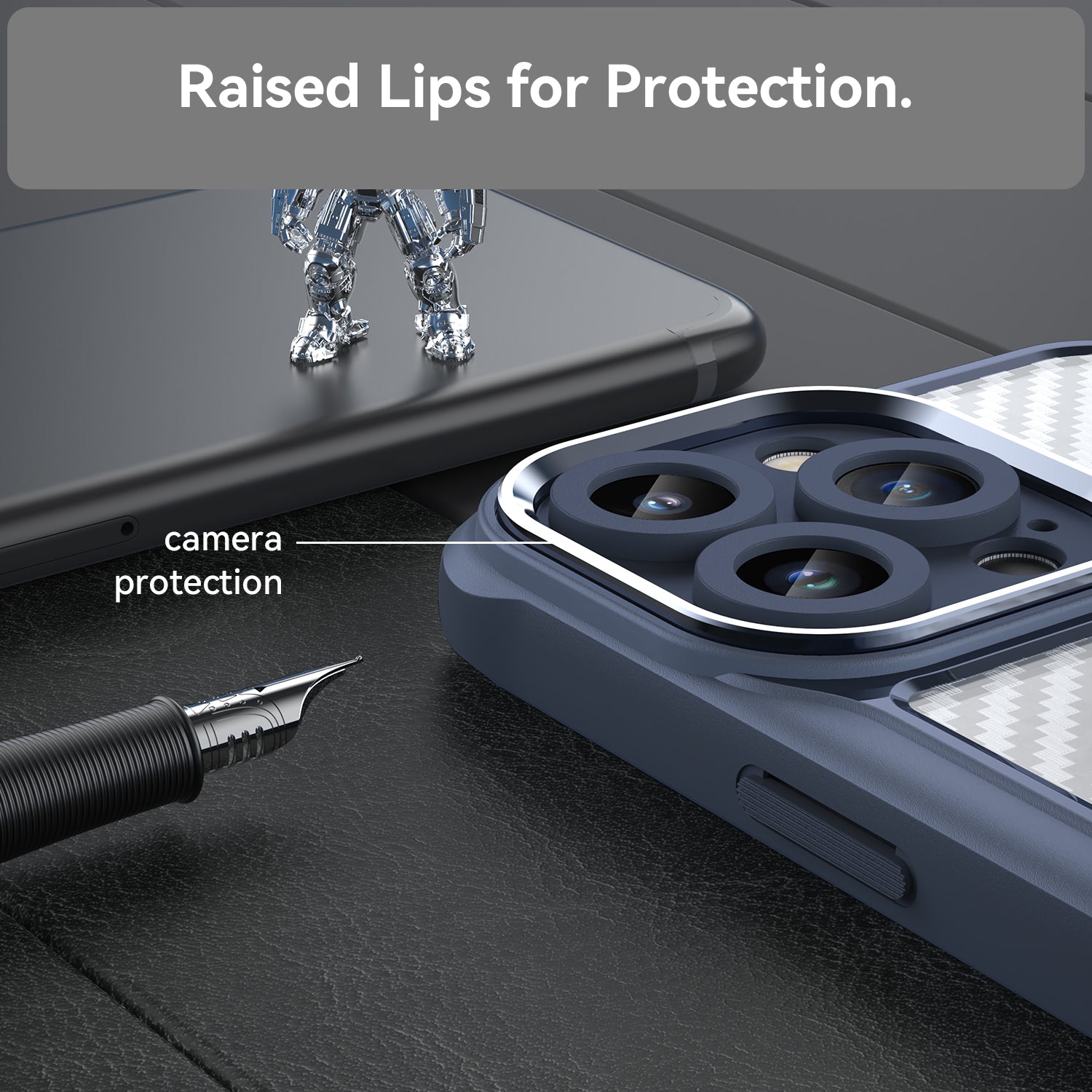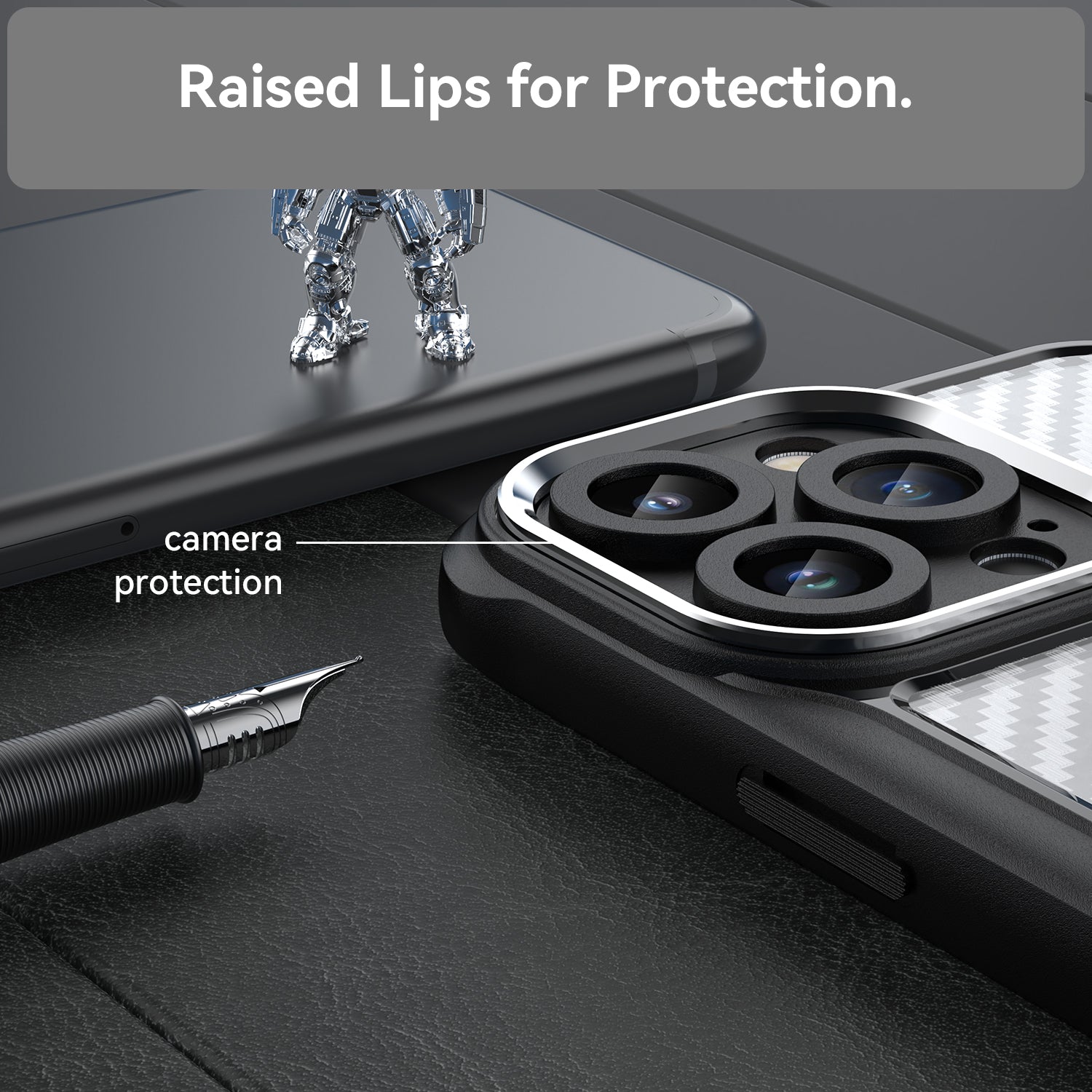 Military-Grade Materials: Combining a soft TPU frame, translucent carbon fiber PC back, and an aluminum alloy lens protective frame, this case is built to last and protect. The robust materials ensure your phone is safeguarded in any situation.