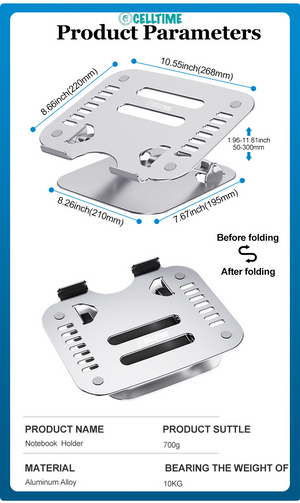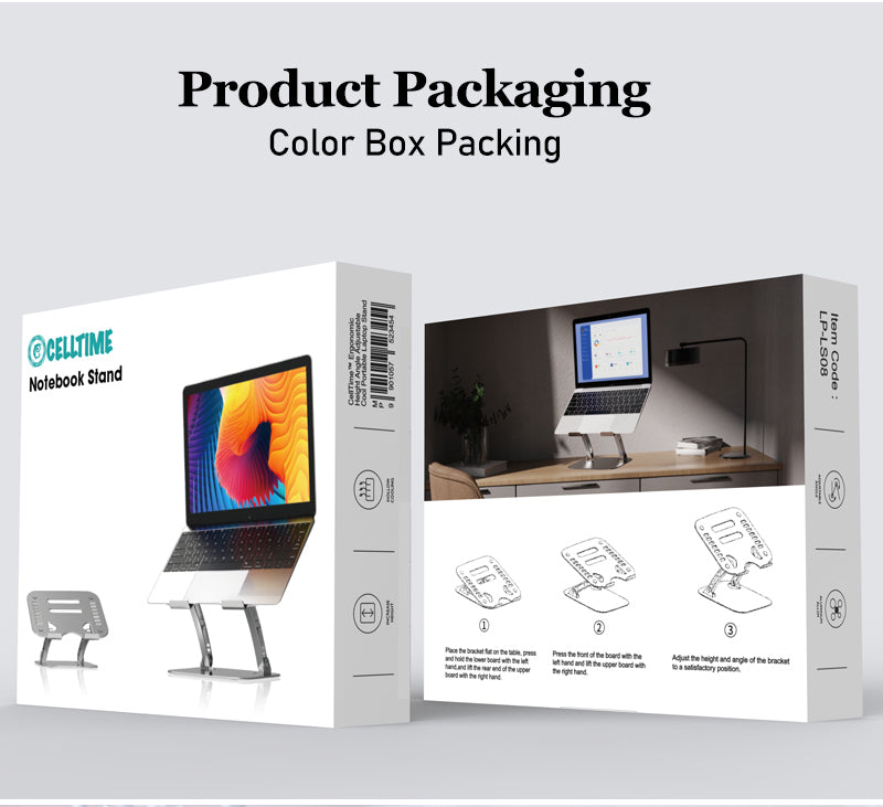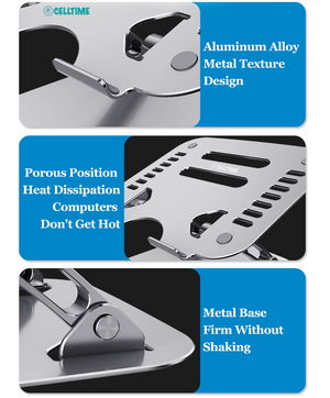 The CellTime™ Ergonomic Height Angle Adjustable Cool Portable Laptop Stand is elegantly designed to be simple and stylish, it fits to your home and office perfectly.