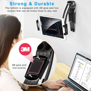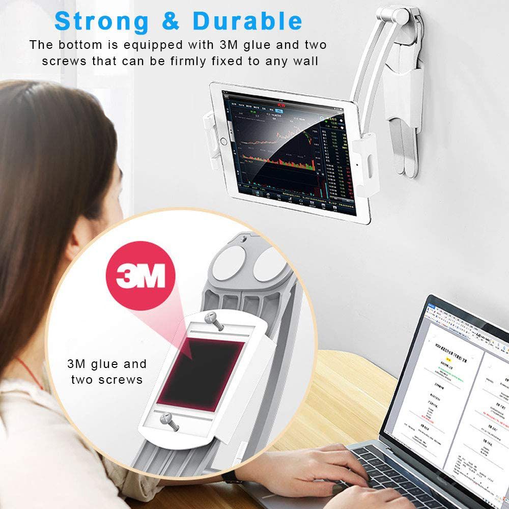 3M glue and screws, More stable - The lazy wall holder base is fixed by 3M glue and screws, so that the tablet wall holder is firmly fixed to the wall, so you can mount the stand wherever you need it.
