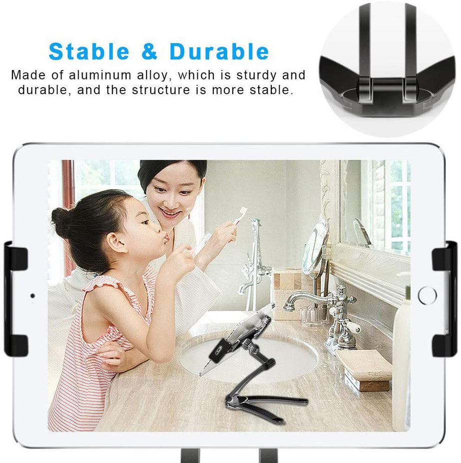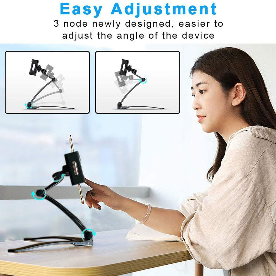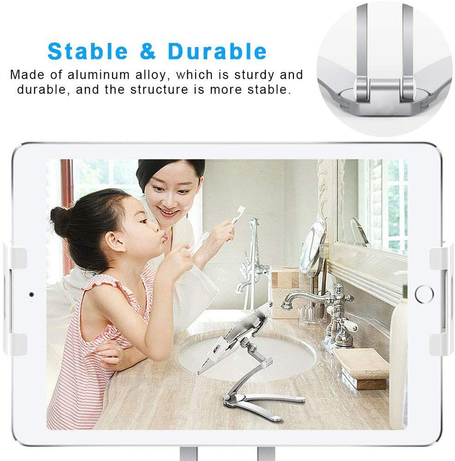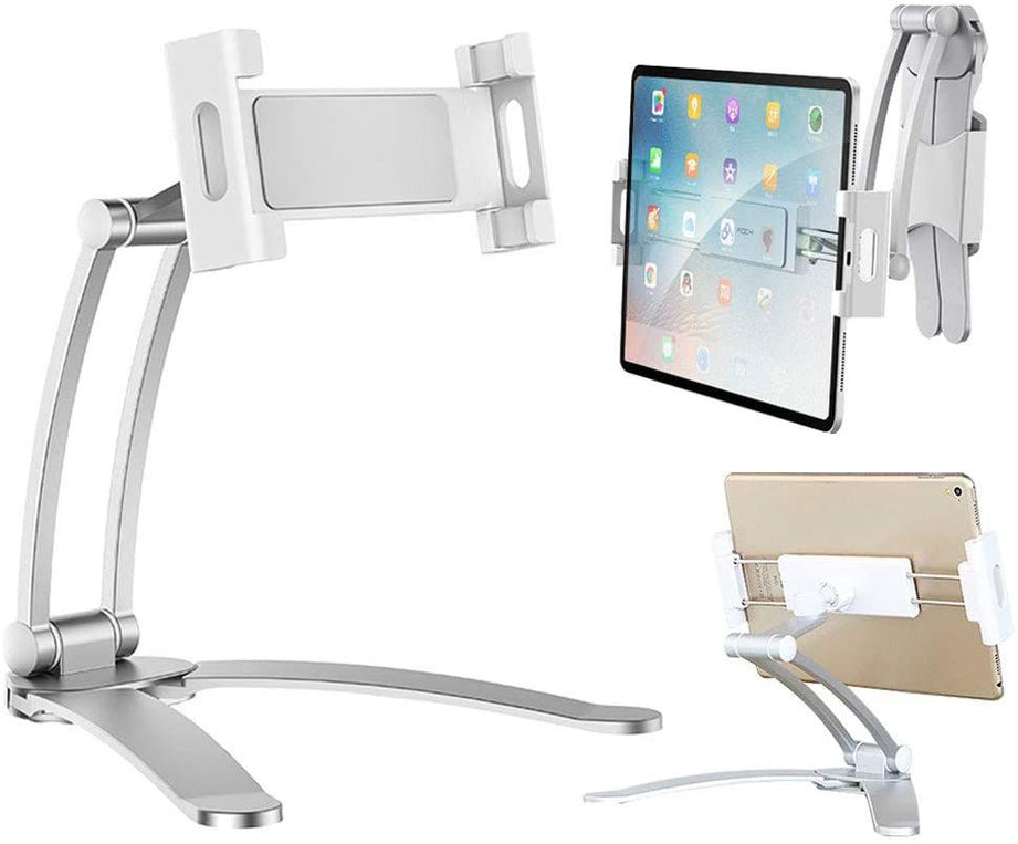 New structure design, More stable - The lazy tablet holder adopts an adjustable A-shaped structure design, which greatly improves the stability of the bracket. You can also fold kitchen tablet holder and insert it into the base to hang it. local. The lazy wall holder arm has a 3-section design that allows easy adjustment of different angles. The clip also supports 360° rotation adjustment to meet your different viewing angle needs