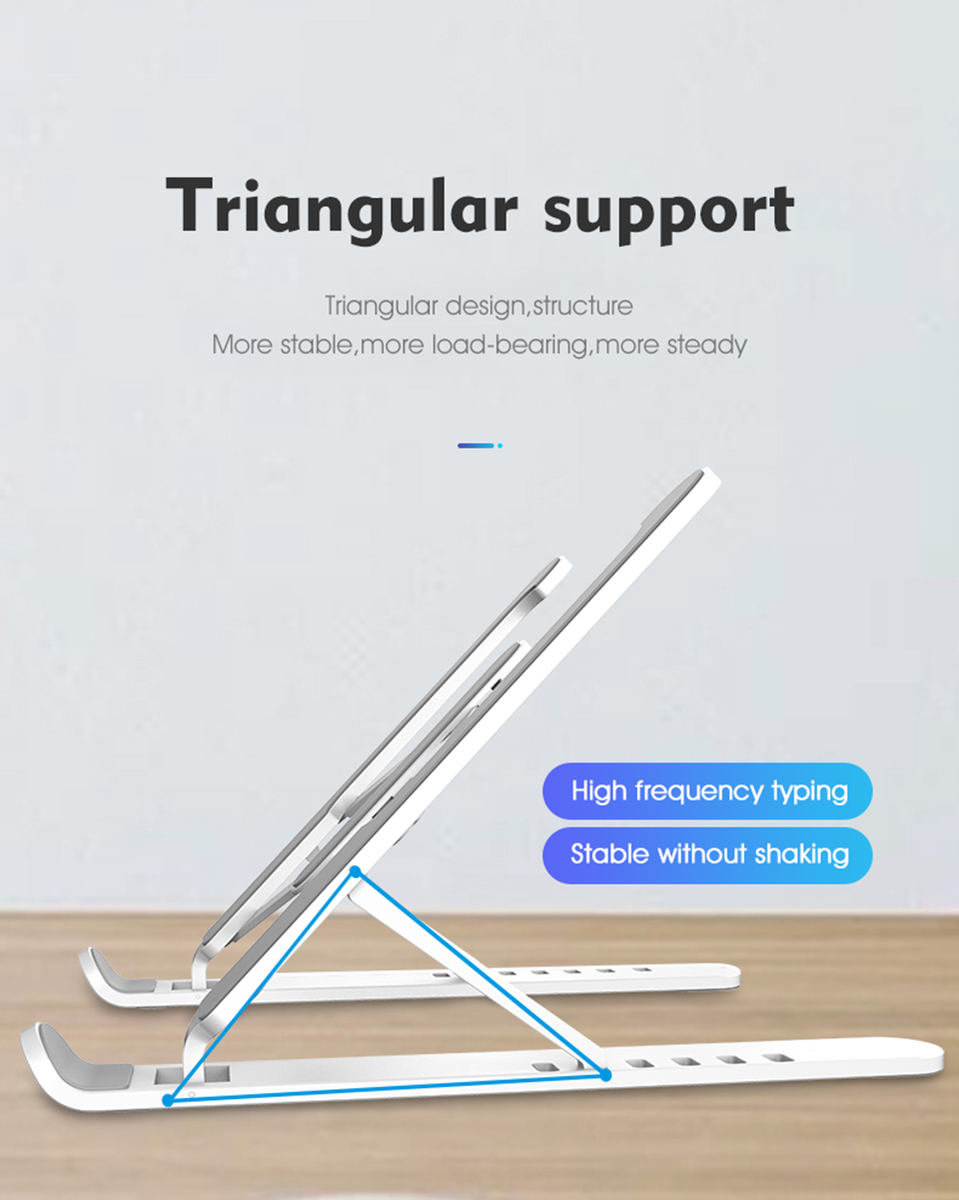 The CellTime™ X-Stand-2 Adjustable Plastic Foldable Cool Portable Laptop Stand offers an adjustable comfortable operating angle and height according to your actual needs, thus reducing neck pain, back pain and eye fatigue. Protect your eyes and help improve your body posture while working on your computer for a long time, and our stand is your first-rate choice.