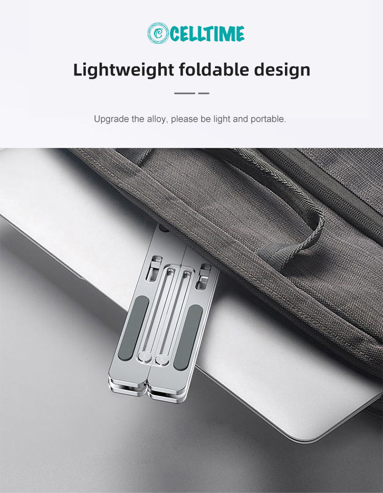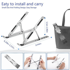 • Compact and Portable: Creative portable foldable design, the laptop stand can be folded to the size of 9.4*1.75 inches and with the portable storage bag to make it easy carry-on.