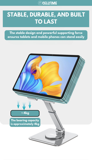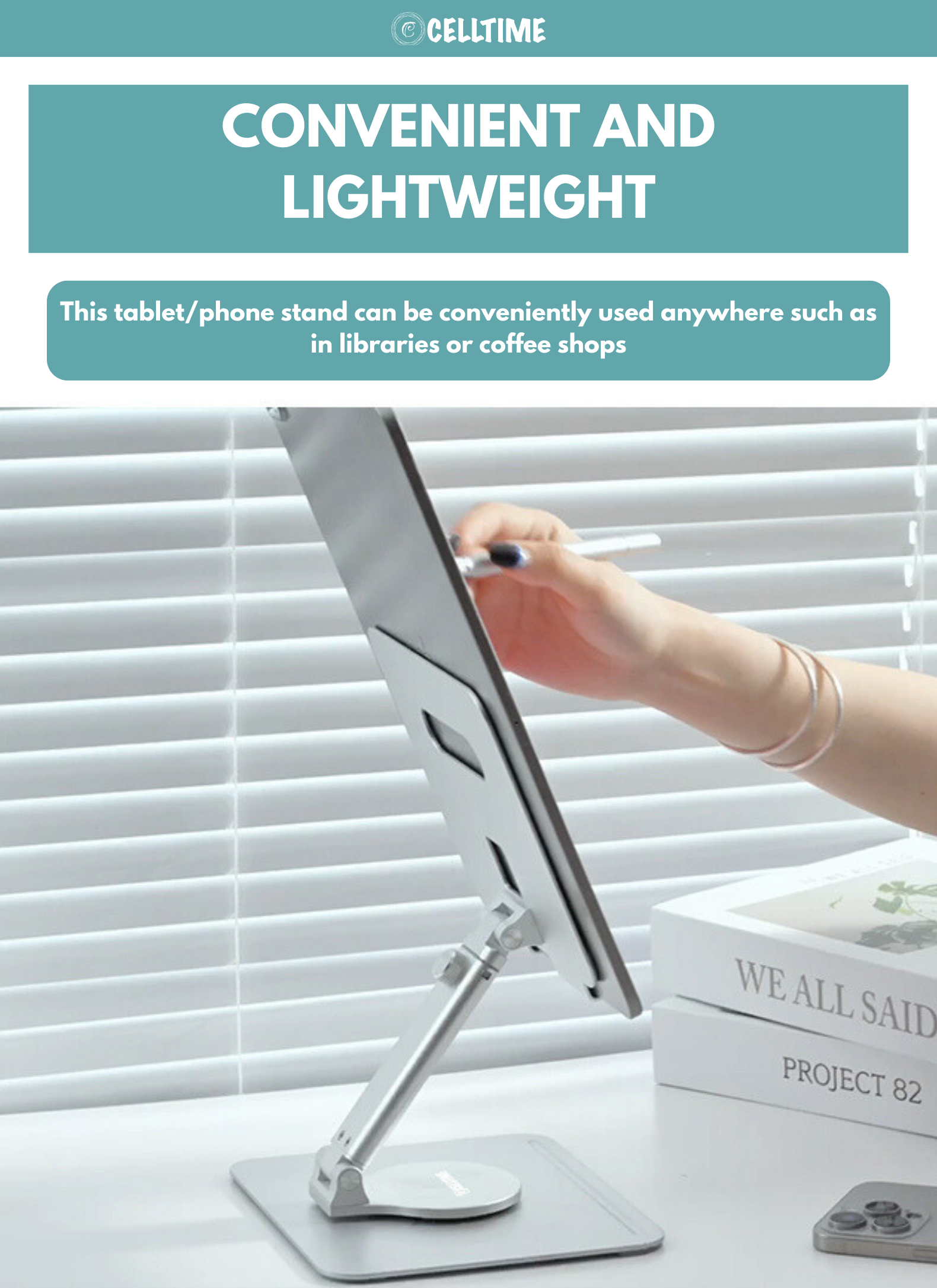 Upgrade your productivity and creativity with the CellTime Aluminium Foldable Rotatable Smartphone/Tablet Stand + Stylus Pen, designed to provide stability, flexibility, and style wherever you are.