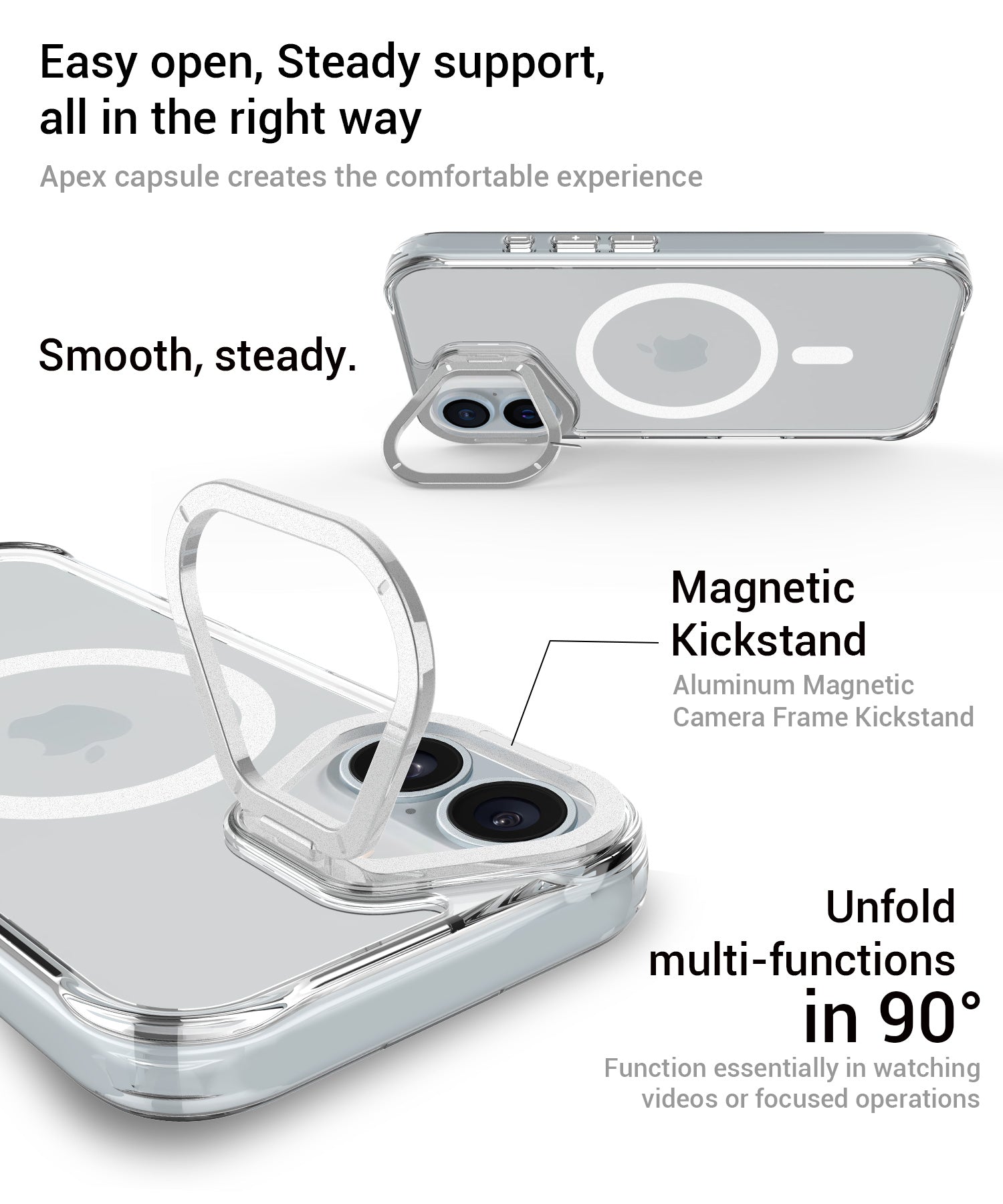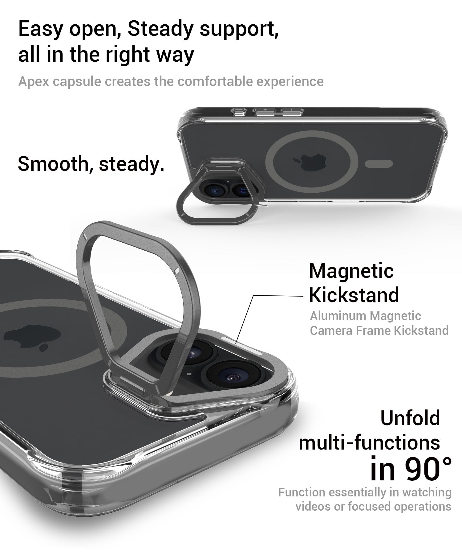 The CellTime Apex Capsule Cover for iPhone 16 is the epitome of durable elegance. With features like military-grade drop protection, a multifunctional aluminum camera frame kickstand, and MagSafe compatibility, this case is designed for those who demand the best. Its unibody design, anti-yellowing TPU, and certified protection make it a reliable choice for keeping your iPhone safe and stylish. Choose the CellTime Apex Capsule Cover and elevate your iPhone experience to the next level.
