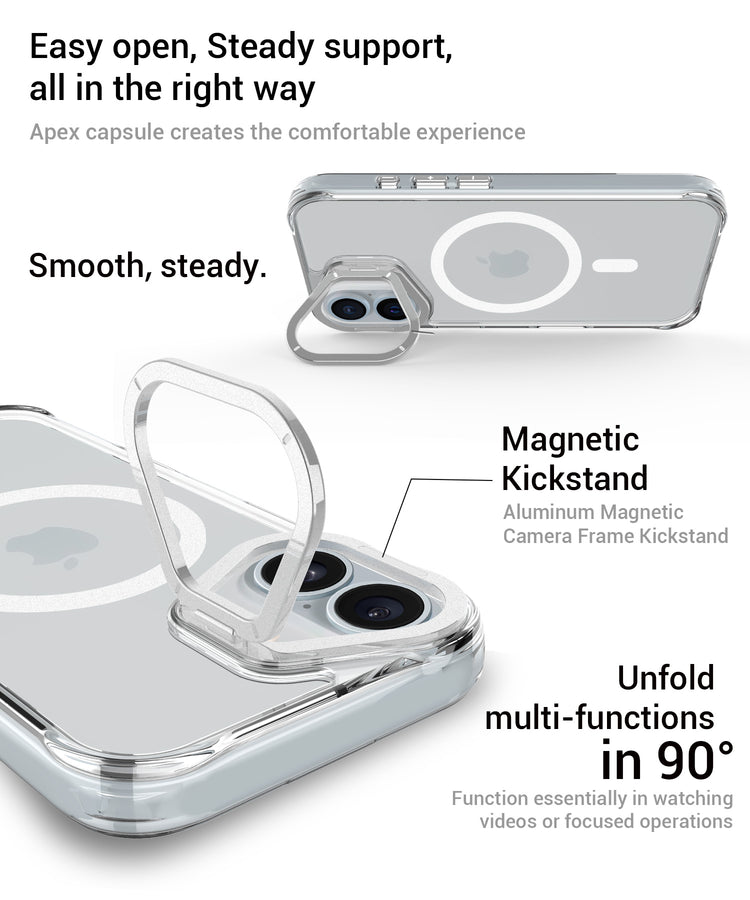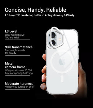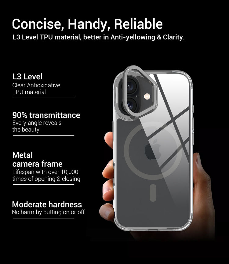 Unibody Design with Anti-Yellow TPU: The unibody construction of the Apex Capsule Cover ensures a snug fit, while the L3 level clear antioxidative TPU material resists yellowing and maintains clarity. With 90% transmittance, the case reveals the beauty of your iPhone from every angle, keeping it looking as good as new.