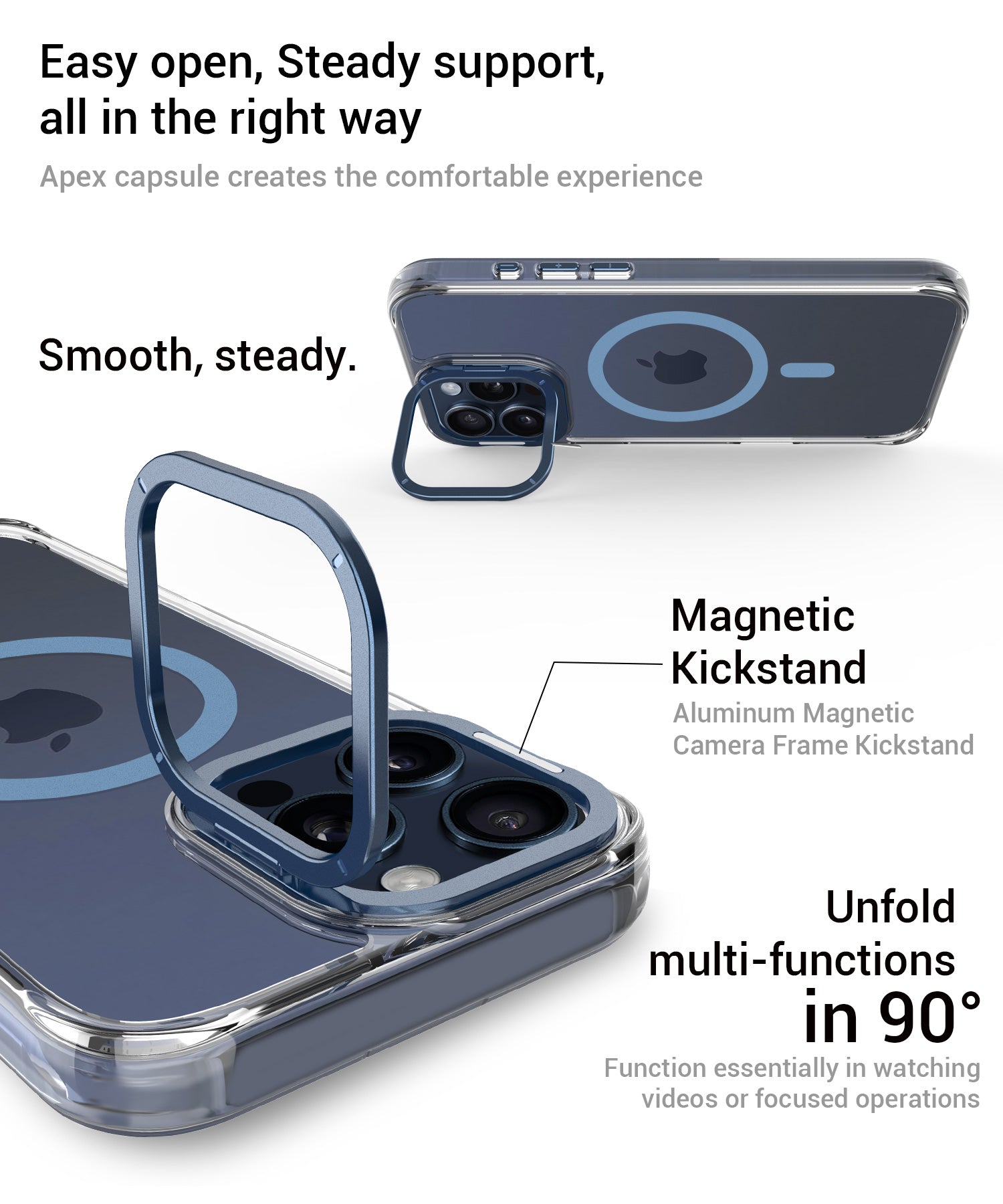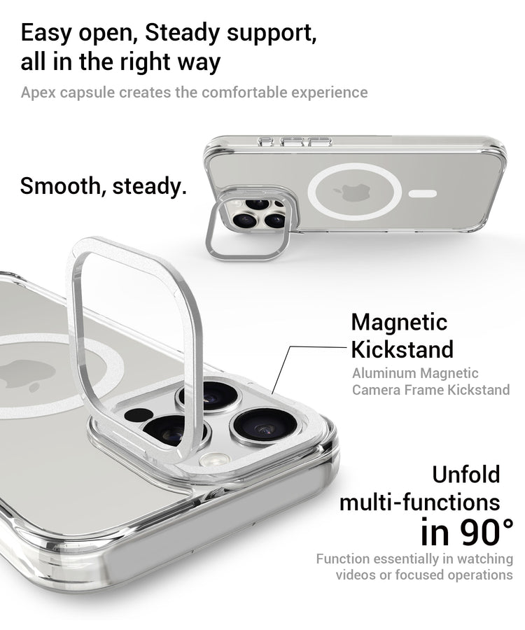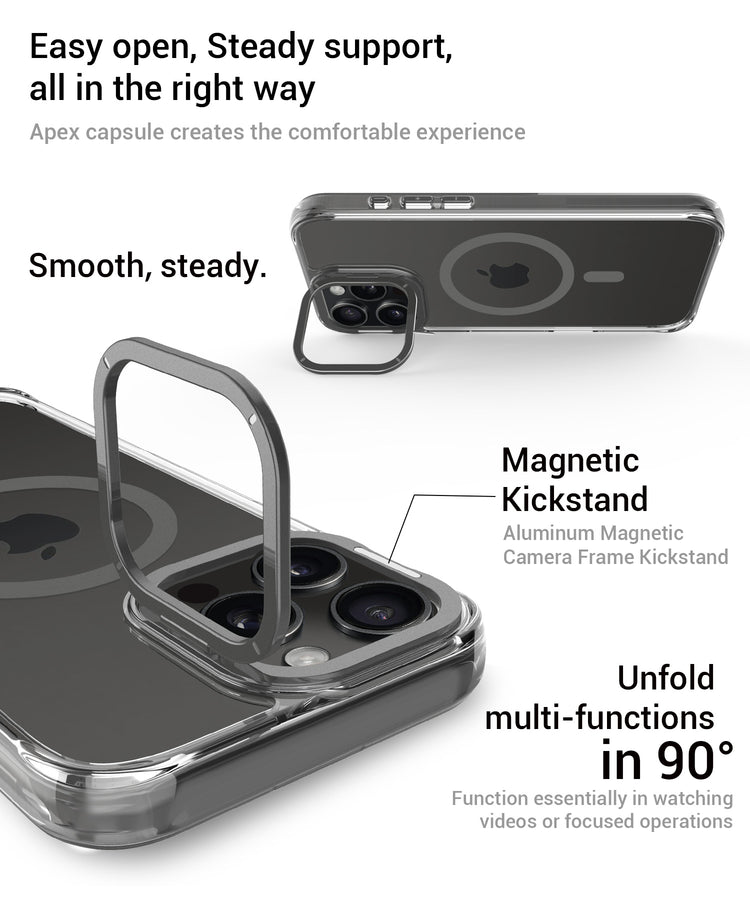 The CellTime Apex Capsule Cover for iPhone 16 Pro / iPhone 16 Pro Max is the epitome of durable elegance. With features like military-grade drop protection, a multifunctional aluminum camera frame kickstand, and MagSafe compatibility, this case is designed for those who demand the best. Its unibody design, anti-yellowing TPU, and certified protection make it a reliable choice for keeping your iPhone safe and stylish. Choose the CellTime Apex Capsule Cover and elevate your iPhone experience to the next level.