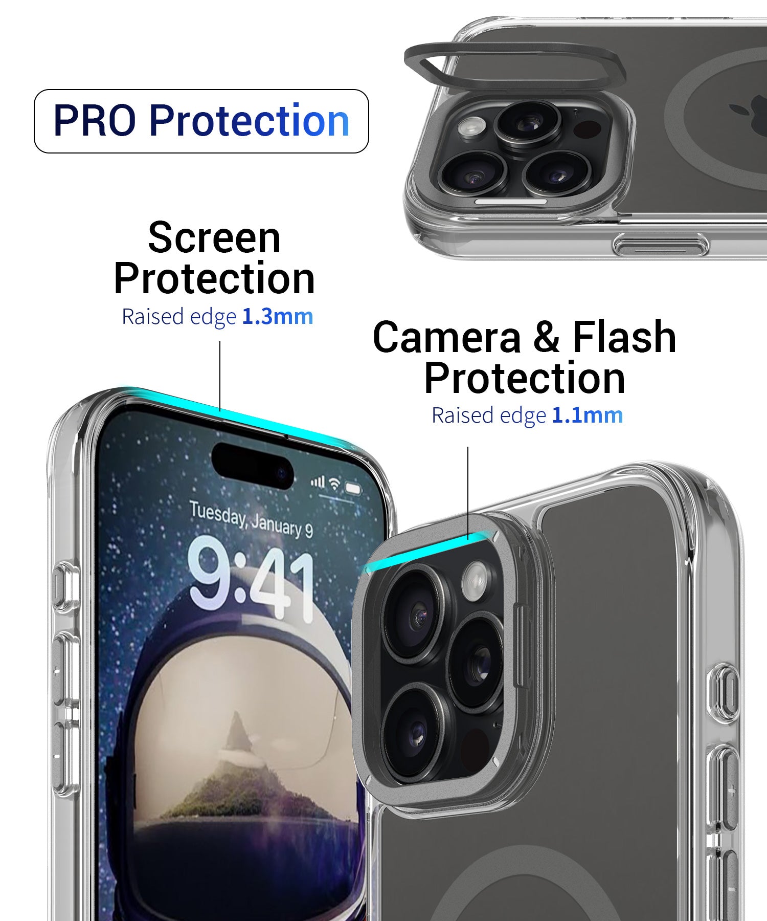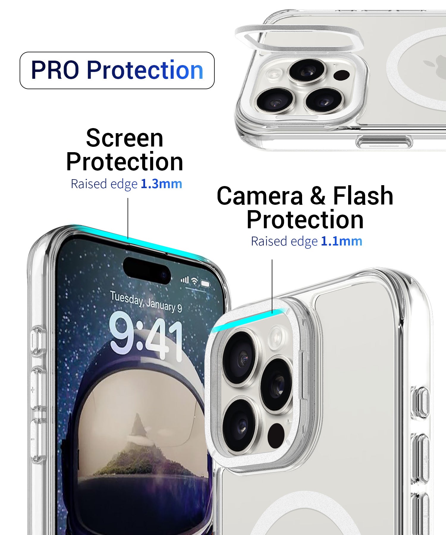 Pro-Level Protection for Screen and Camera: Your iPhone's most vulnerable areas are well-protected with raised edges-1.3mm higher for the screen and 1.1mm higher for the camera and flash. This thoughtful design prevents scratches and damage, keeping your device in pristine condition.