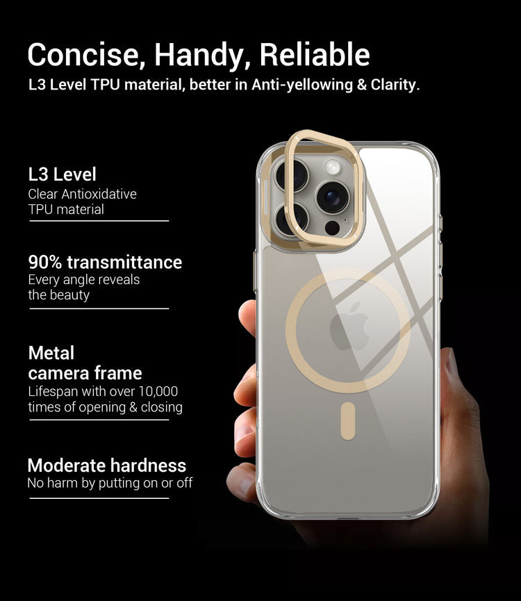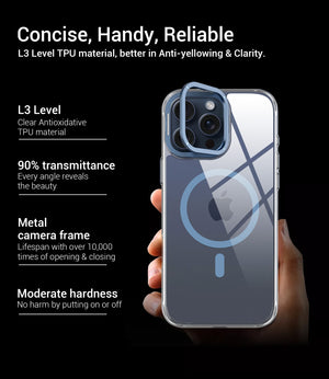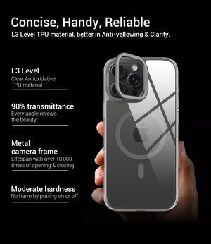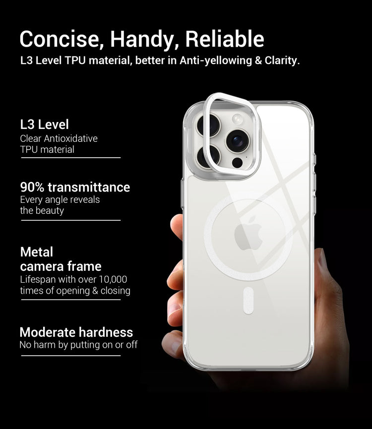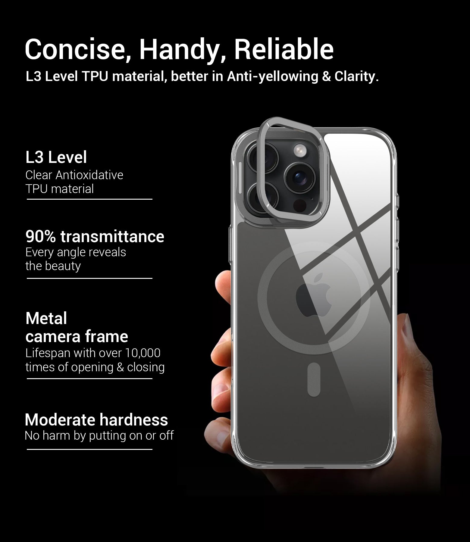 Unibody Design with Anti-Yellow TPU: The unibody construction of the Apex Capsule Cover ensures a snug fit, while the L3 level clear antioxidative TPU material resists yellowing and maintains clarity. With 90% transmittance, the case reveals the beauty of your iPhone from every angle, keeping it looking as good as new.