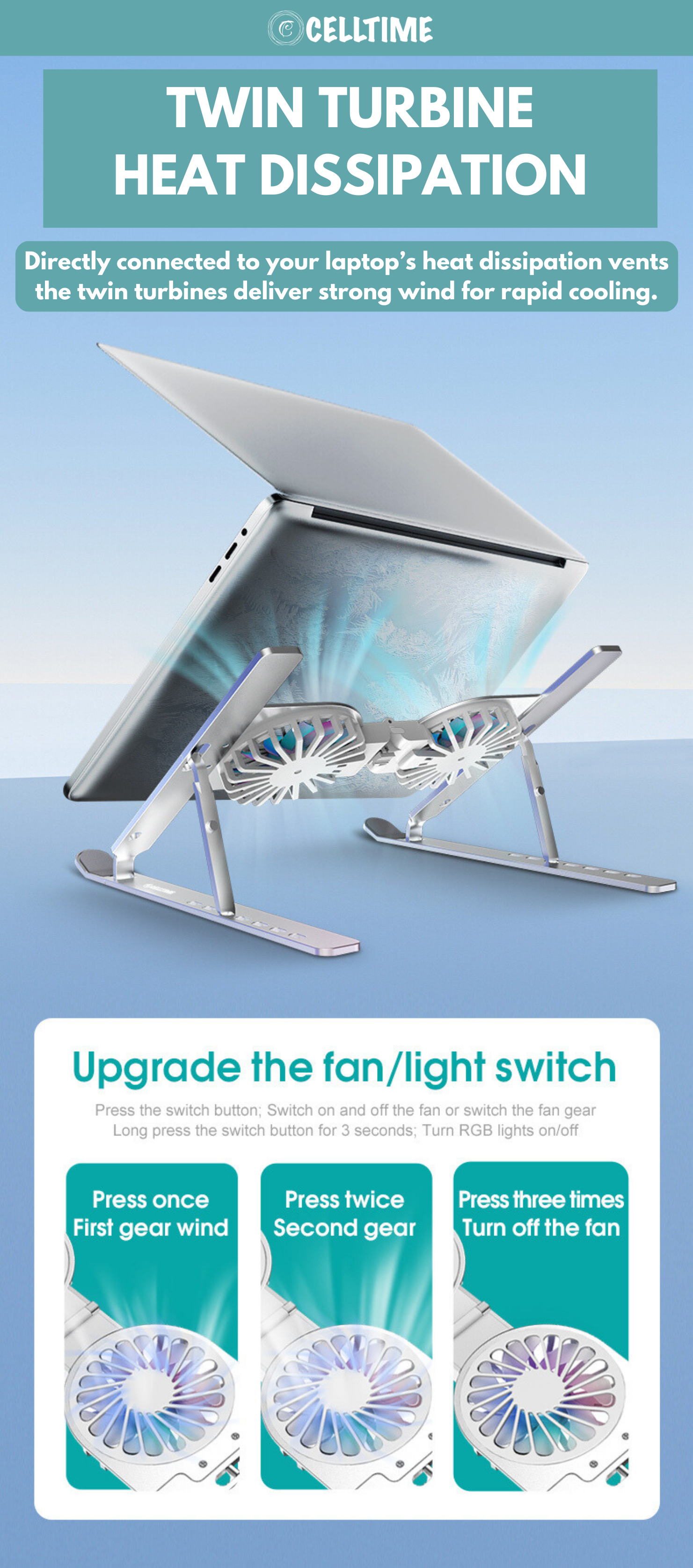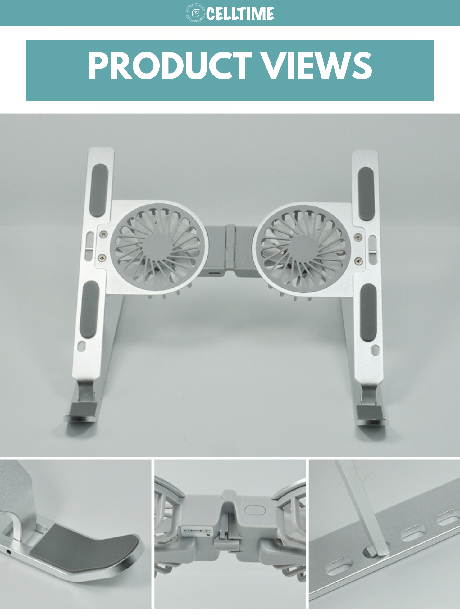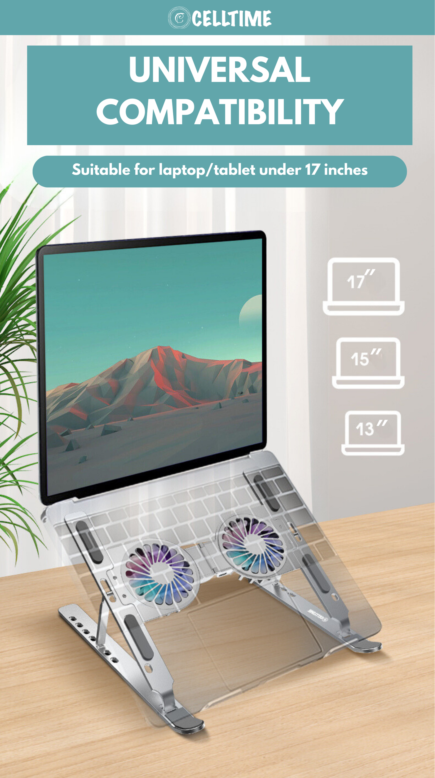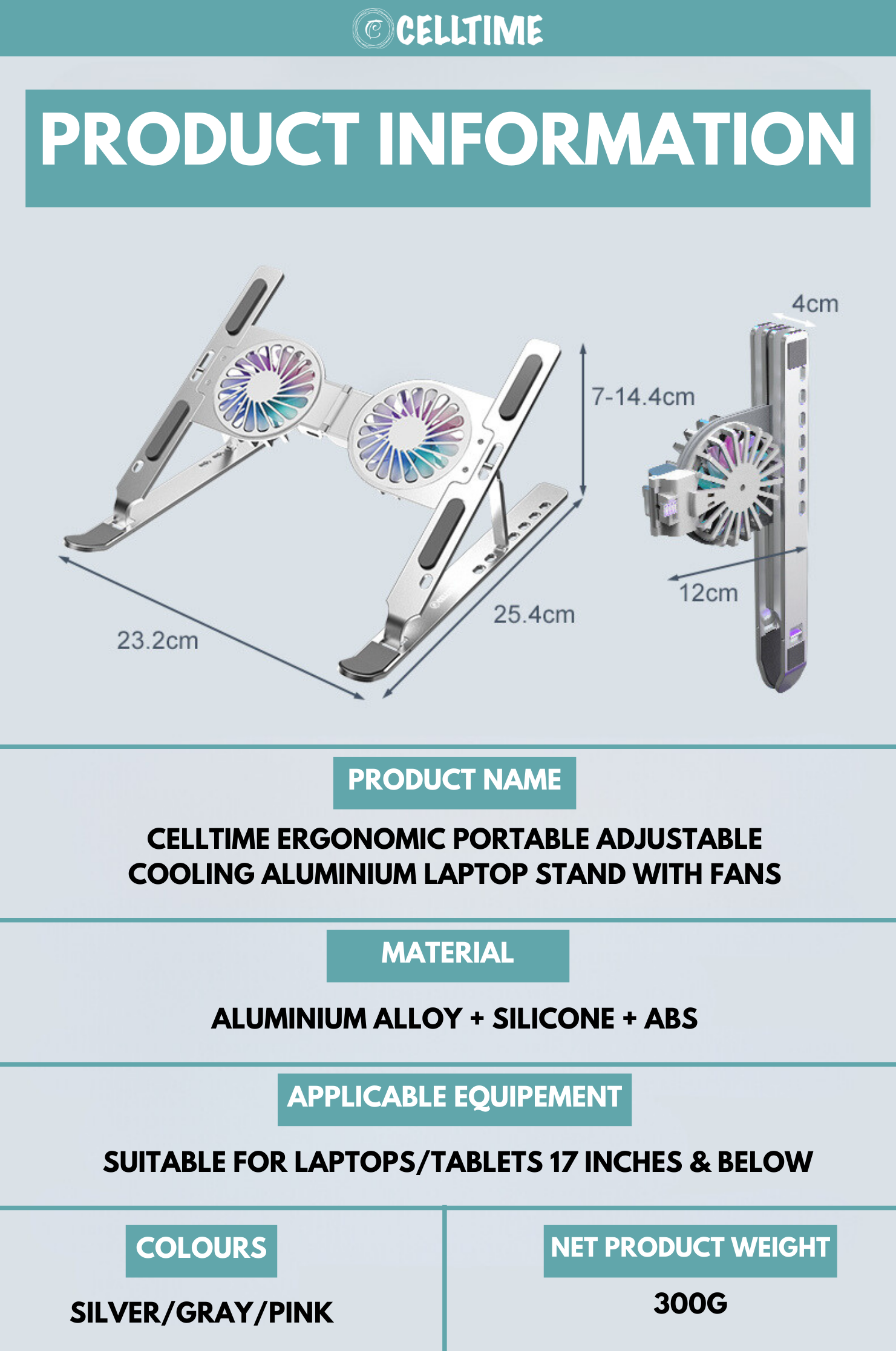 CellTime Ergonomic Adjustable Aluminium Laptop Stand With Two Cooling Fans