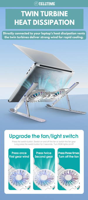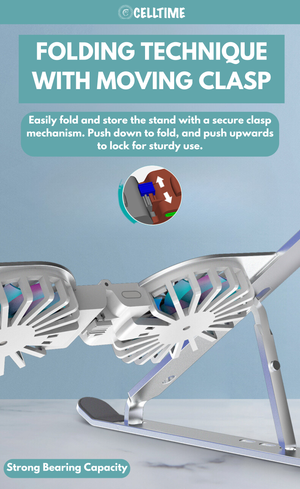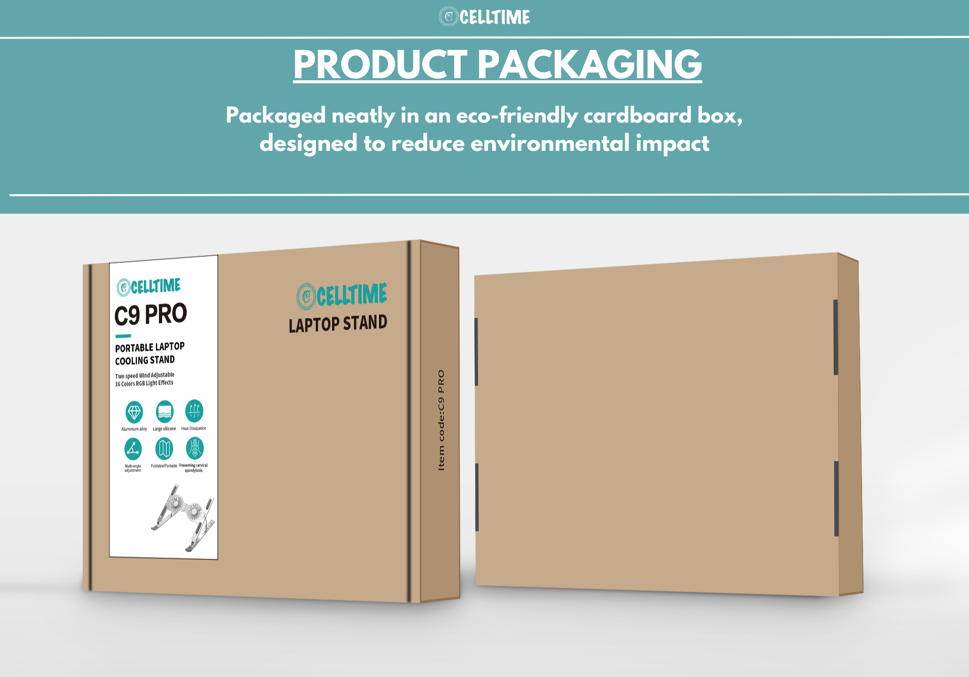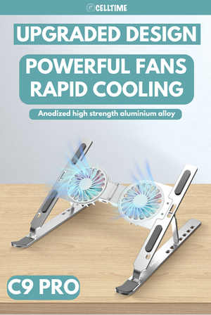 Elevate your workspace with the CellTime C9 Pro Laptop Stand, the ultimate solution for cooling, comfort, and productivity. Designed to meet the needs of professionals, gamers, and traveler's, this stand combines cutting-edge cooling technology, ergonomic adjustability, and sleek portability to enhance your device's performance and your posture.