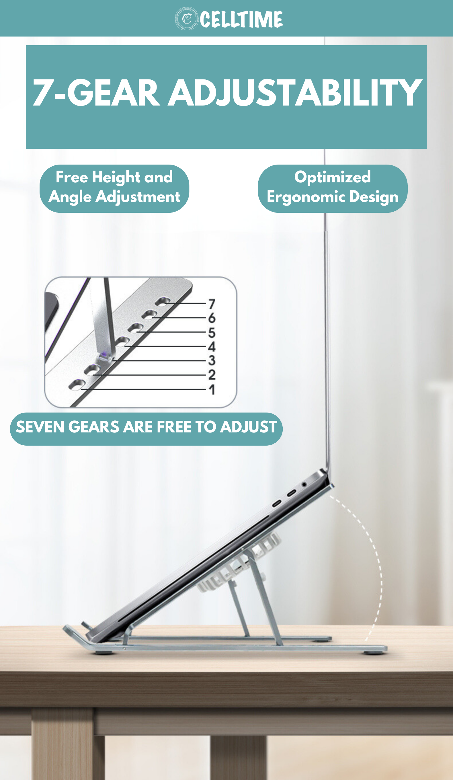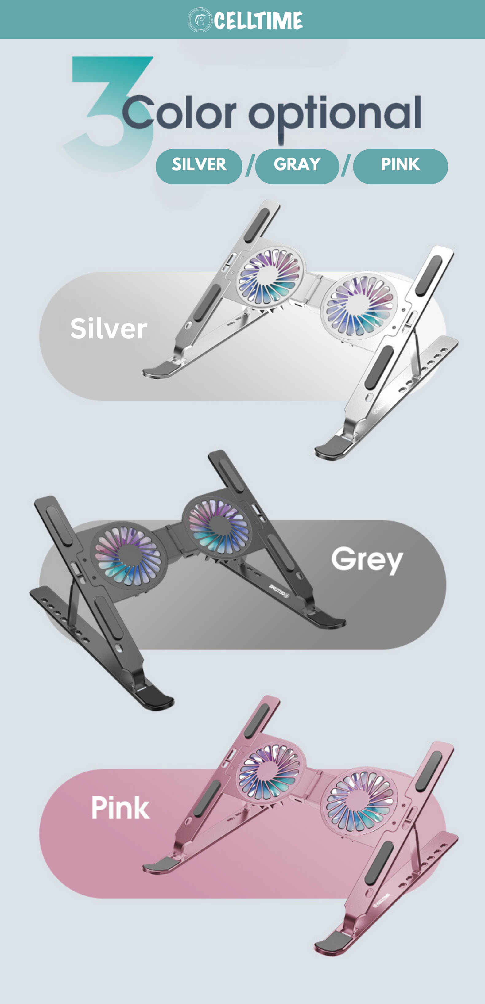 Lightweight and Stylish Design: Weighing just 300g, the CellTime C9 Pro Laptop Stand is easy to carry while offering a professional look in Pink, Silver, or Gray to match your style or workspace décor.
