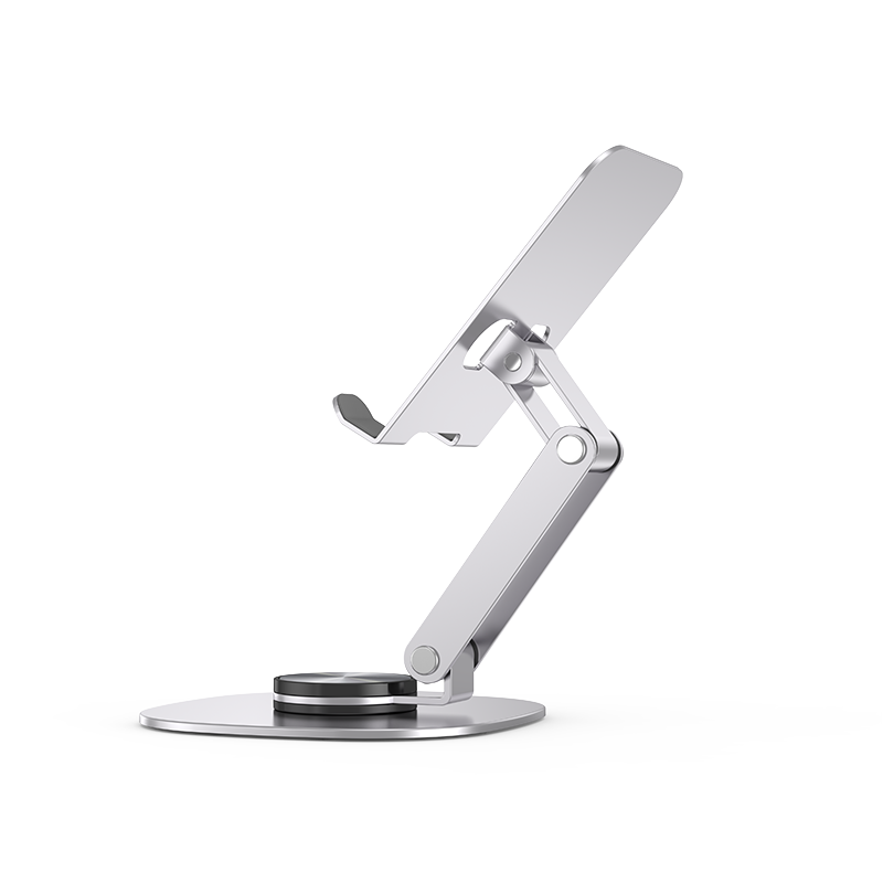 Aviation-Grade Aluminium Alloy Build: Crafted from imported aviation-grade aluminium alloy, the phone/tablet stand is lightweight yet incredibly strong. Its robust construction resists drops, wear, and deformation, ensuring longevity and reliability. The fine-polished surface offers a premium feel while enhancing resistance to scratches and abrasions, making it as stylish as it is durable.