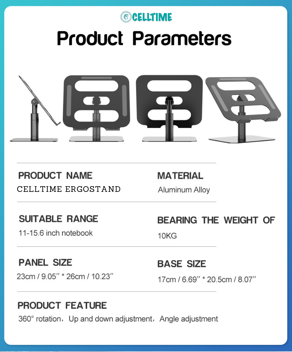 Quality Craftsmanship: At CellTime, we're dedicated to creating products that enhance your workspace experience. With attention to detail, quality materials, and superior craftsmanship, our ErgoStand facilitates a better work environment for both you and your device.