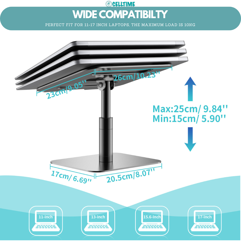 No Wobbles, No Tipping Over: Experience unparalleled stability with our solid flat base design. Engineered to support laptops ranging from 11 to 17 inches, our stand ensures your device remains safe, steady, and effortlessly accessible.