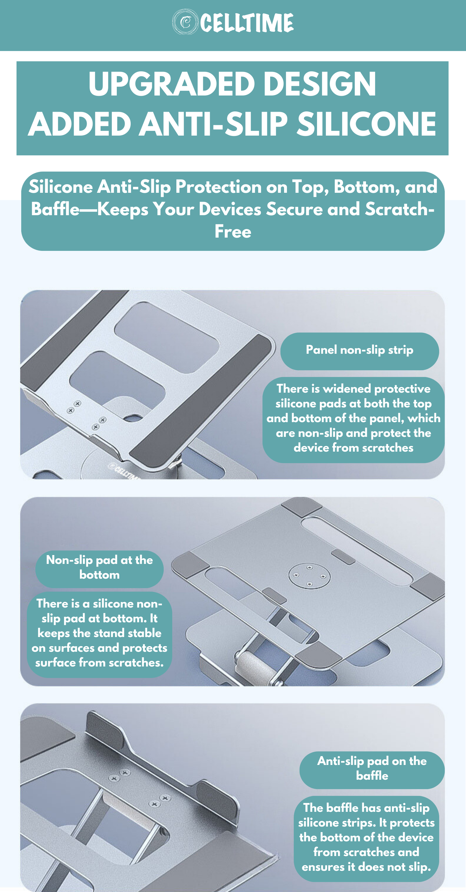 Bottom Silicone Pads: Keeps the stand stable on any surface while protecting your desk.