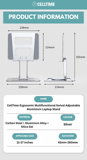 CellTime Ergonomic Multifunctional Swivel Adjustable Aluminium Laptop Stand