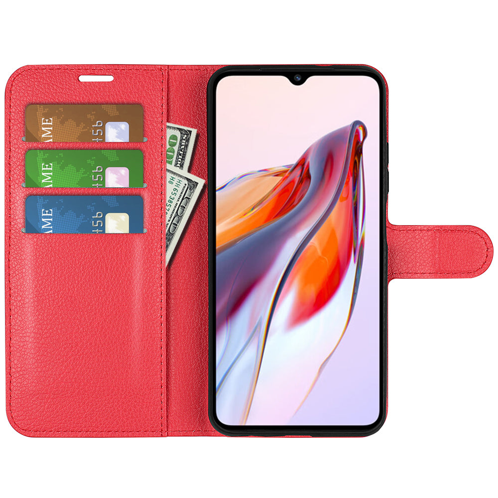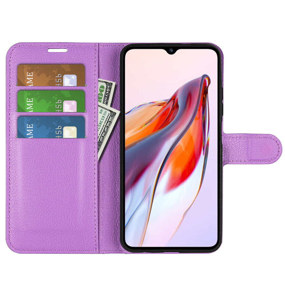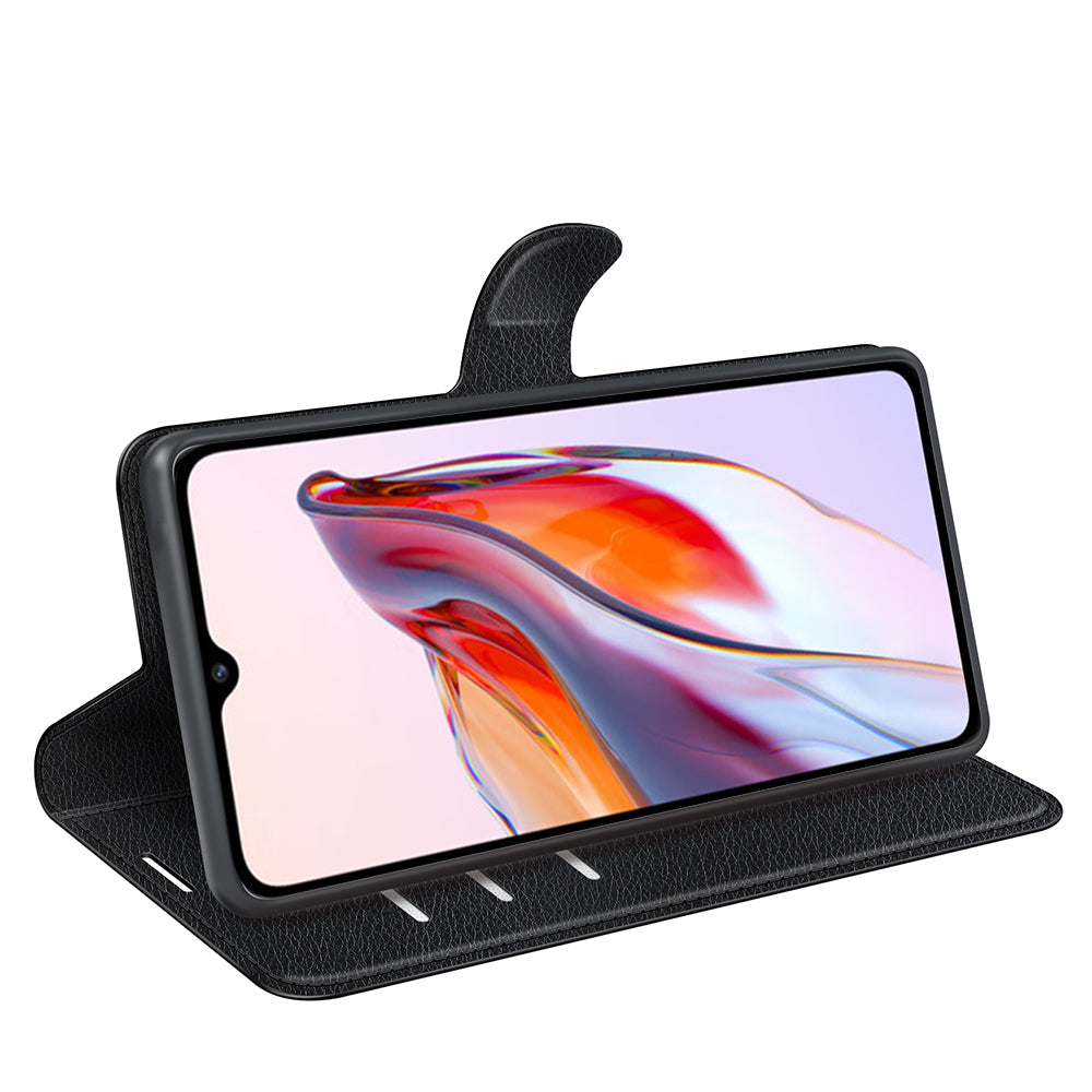 The cover includes 3 card slots, 1 money pocket, full cable/button/speaker access, a magnetic closure, and a landscape kickstand.