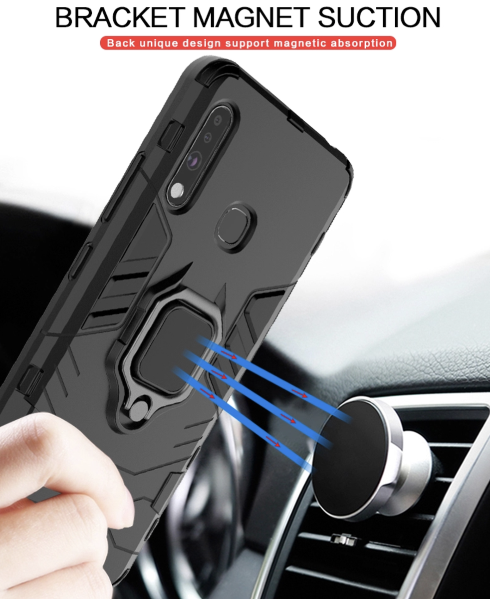 Galaxy A21s Shockproof Black Panther Magnetic Ring Stand Cover