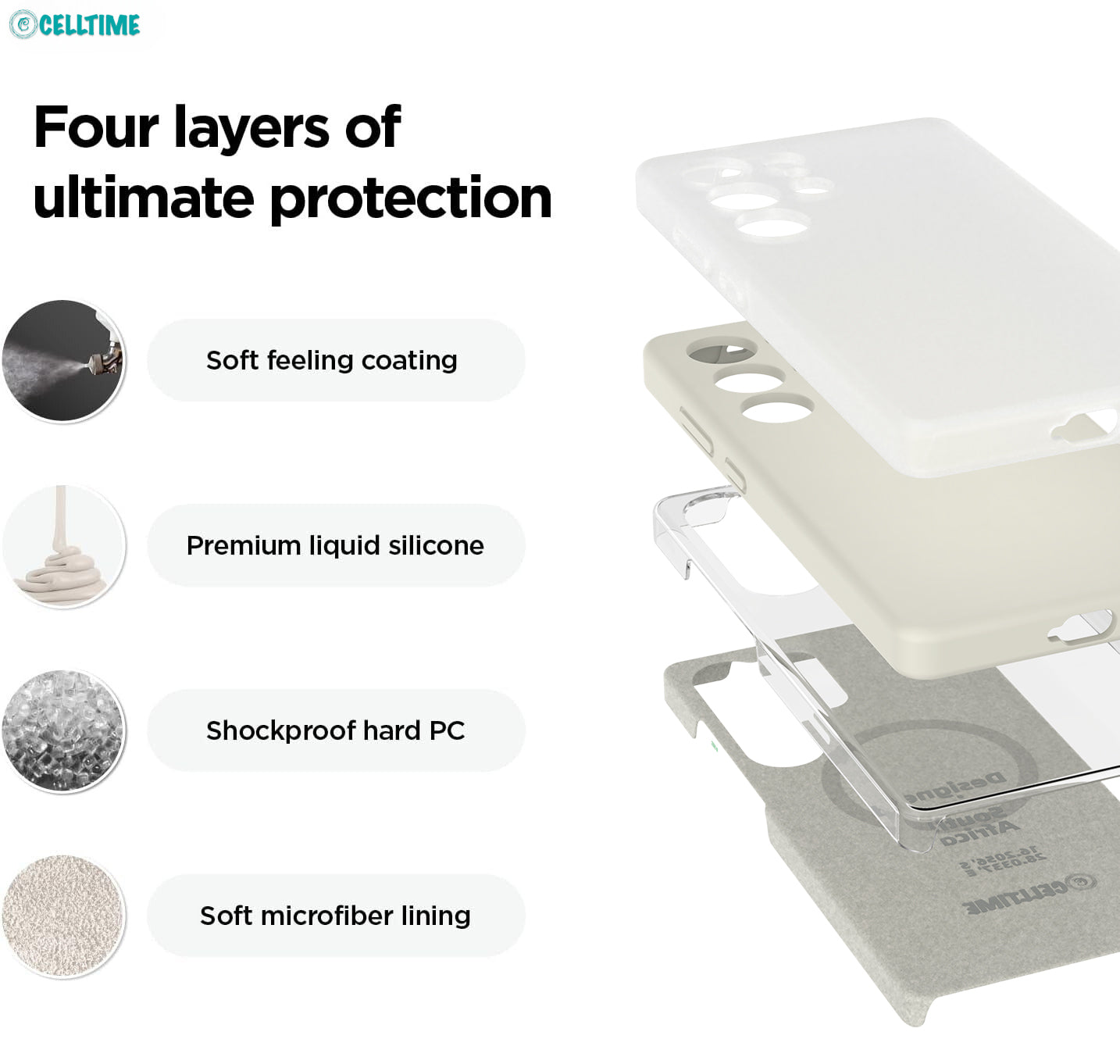 Four-Layer Ultimate Protection with Premium Materials: Combining a soft-touch coating, durable liquid silicone, an internal hard PC frame, and a soft microfiber lining, this case offers comprehensive protection against scratches, impacts, and daily wear while ensuring a premium tactile experience & keeping your Galaxy S25/S25 Plus/S25 Ultra looking brand new.