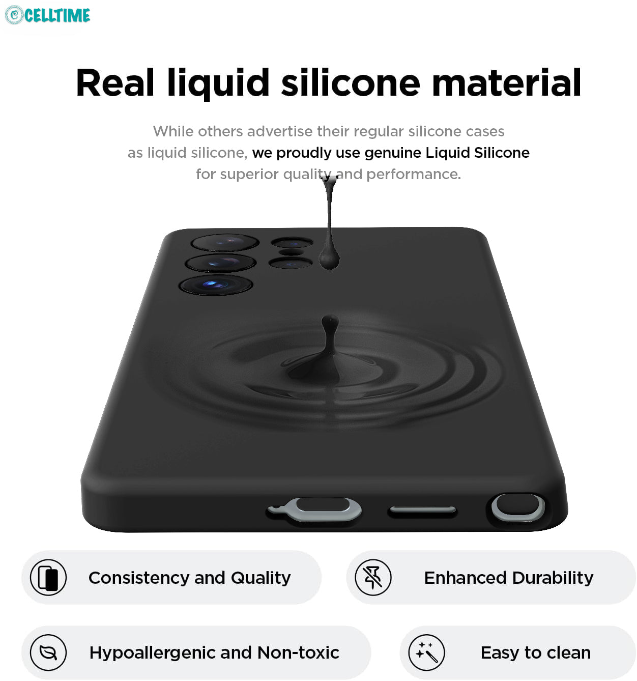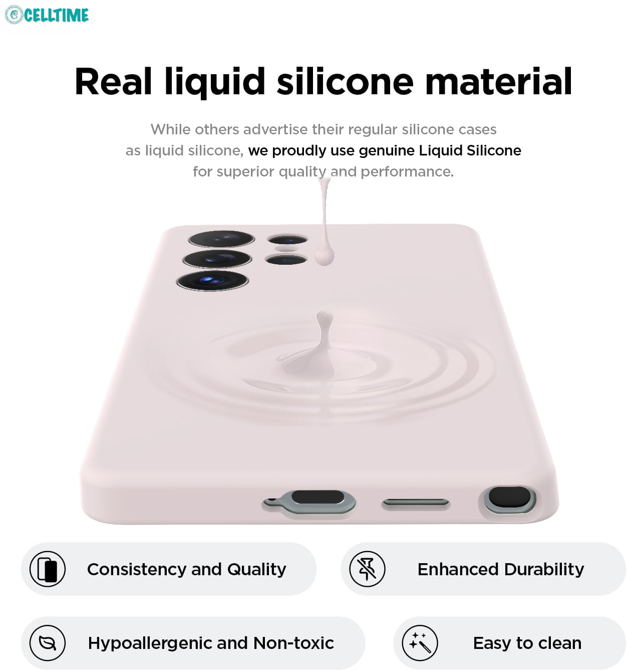 Genuine Liquid Silicone: Hypoallergenic, easy to clean, and ultra-durable.