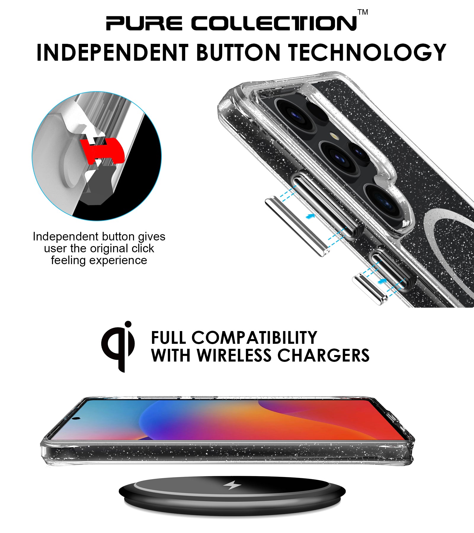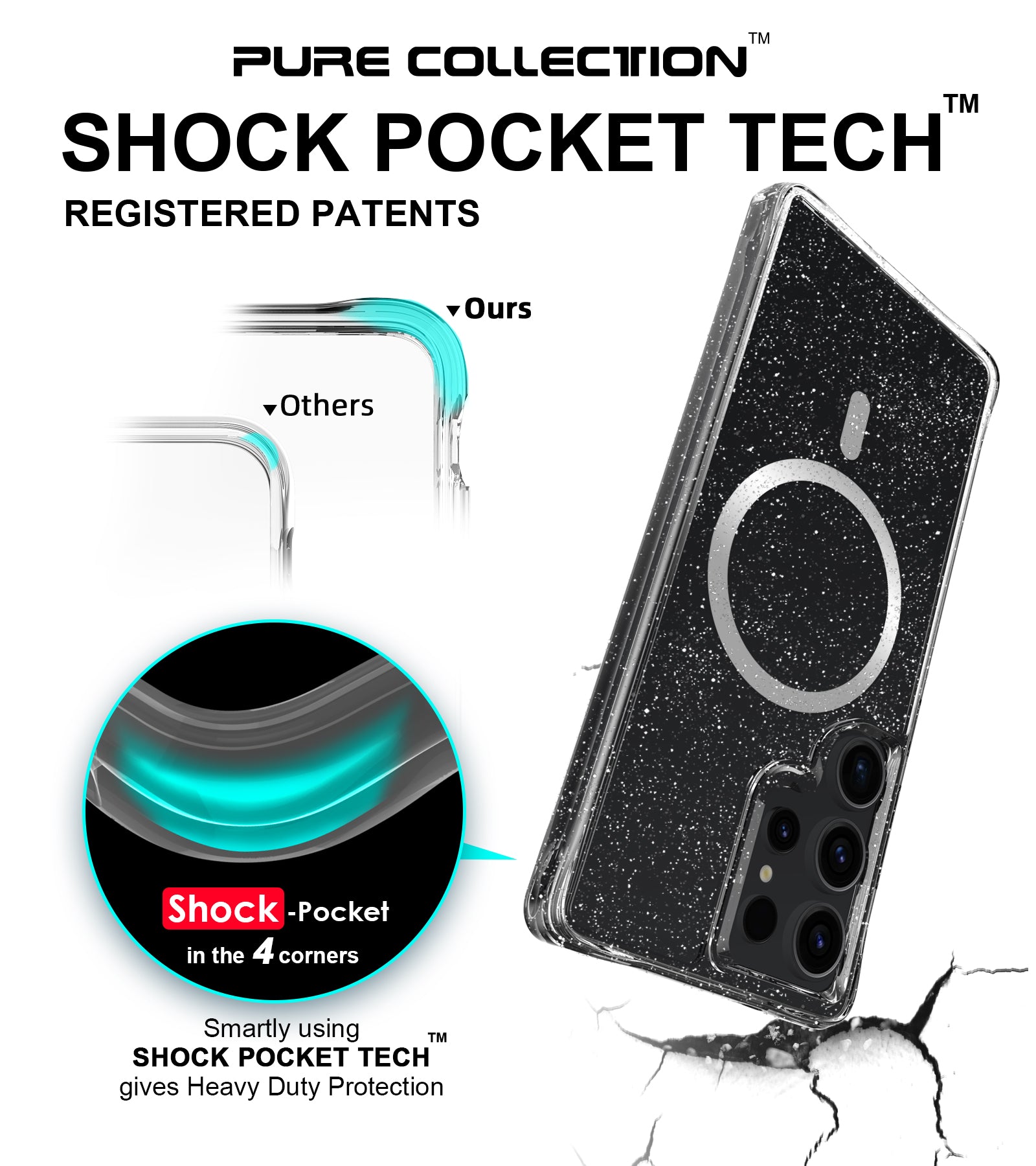 The CellTime Pure Glitter MagSafe Cover for Galaxy S25 Ultra is more than just a cover-it's a statement of style and protection. With its innovative Shock Pocket Tech , independent button design, and clear, anti-scratch back, this case offers everything you need to keep your device safe and looking great. Plus, it's fully MagSafe compatible, making it the perfect accessory for your Galaxy S25 Ultra.