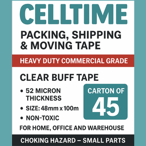 With its ultra-strong adhesion, heavy-duty construction, and generous roll length, the CellTime Heavy-Duty Clear Packaging Tape is your go-to solution for packing like a pro. Whether you're moving house, shipping products, or storing valuables, this tape delivers the security, reliability, and performance you need-every time.