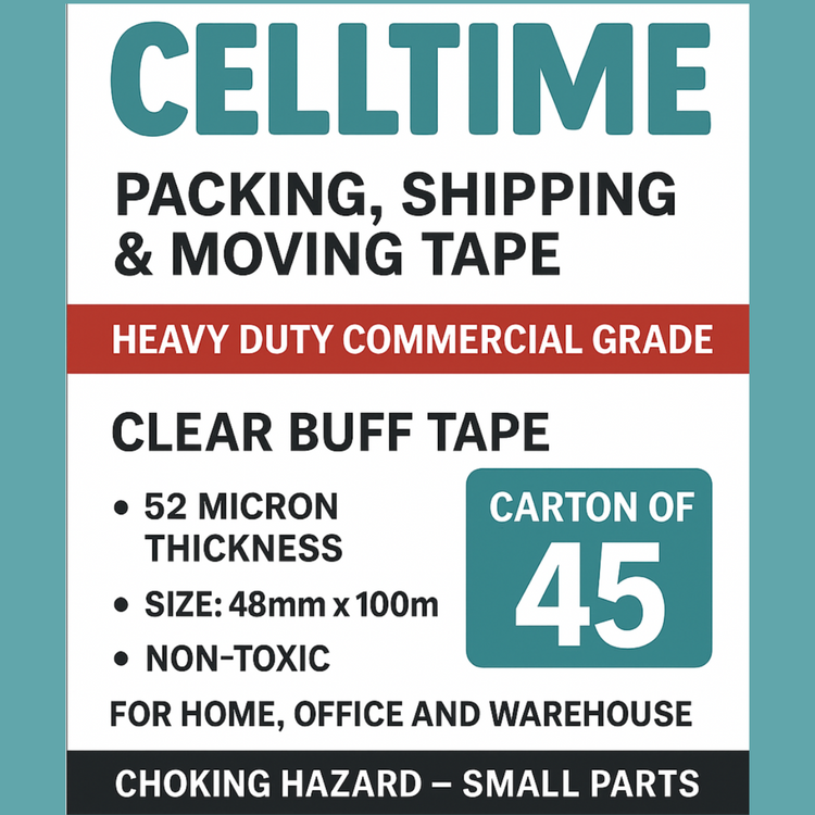 When it comes to securing your packages, protecting your possessions, and packing with confidence, nothing beats the CellTime Heavy-Duty Clear Packaging Tape. Designed for professionals, homeowners, and small businesses, this premium-grade buff tape offers unmatched strength, durability, and ease of use for any packing, shipping, or moving task.