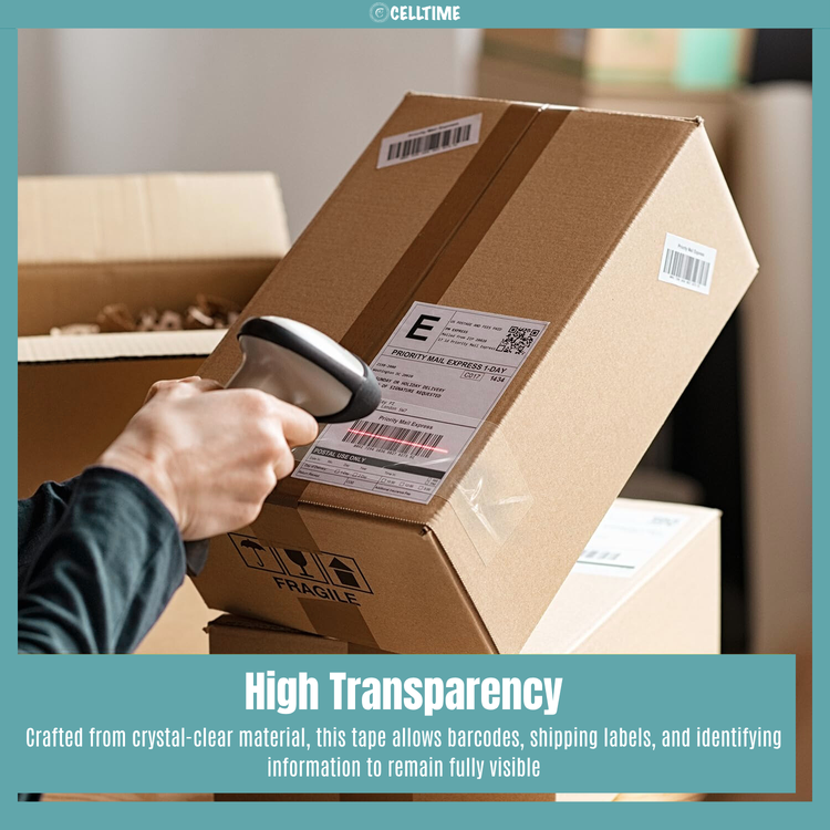 High Transparency: Crafted from crystal-clear material, this tape allows barcodes, shipping labels, and identifying information to remain fully visible, ensuring your packages can be scanned and processed without issue.