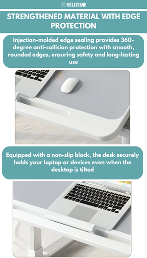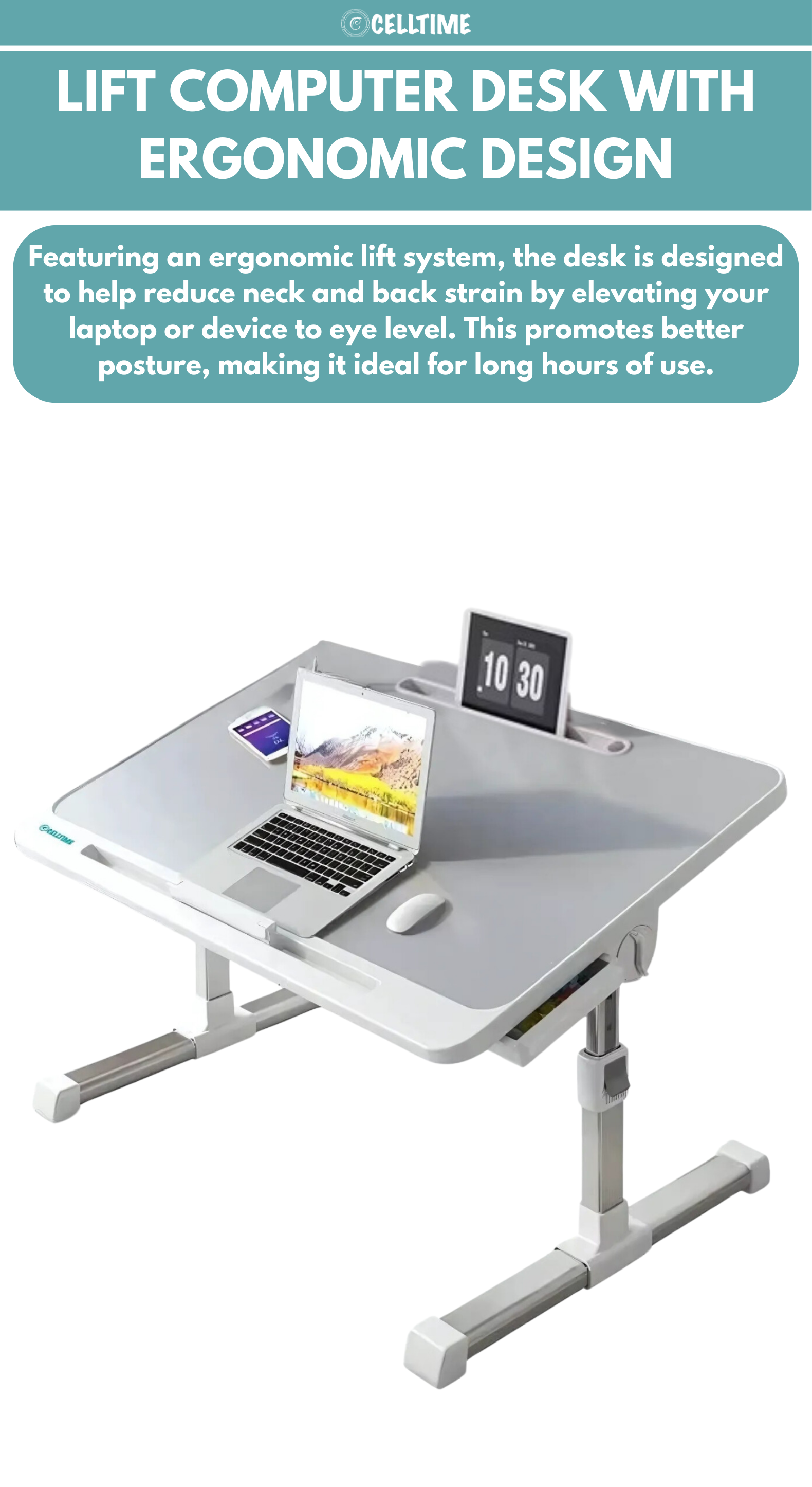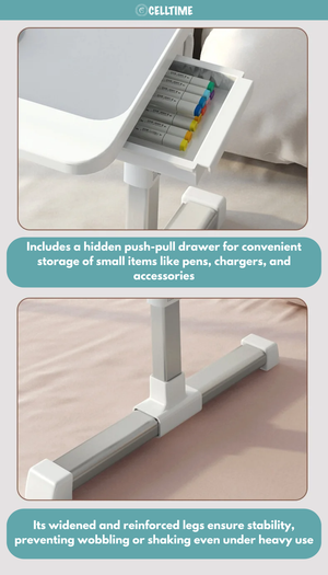 The CellTime Adjustable Foldable Ergonomic Laptop Desk Stand with Drawer is more than just a desk-it's a lifestyle upgrade. From ergonomic comfort to heavy-duty stability, it's designed to fit seamlessly into your daily routine while enhancing your comfort and productivity. Perfect for work, study, or relaxation, this desk stand is your ultimate multi-functional solution.