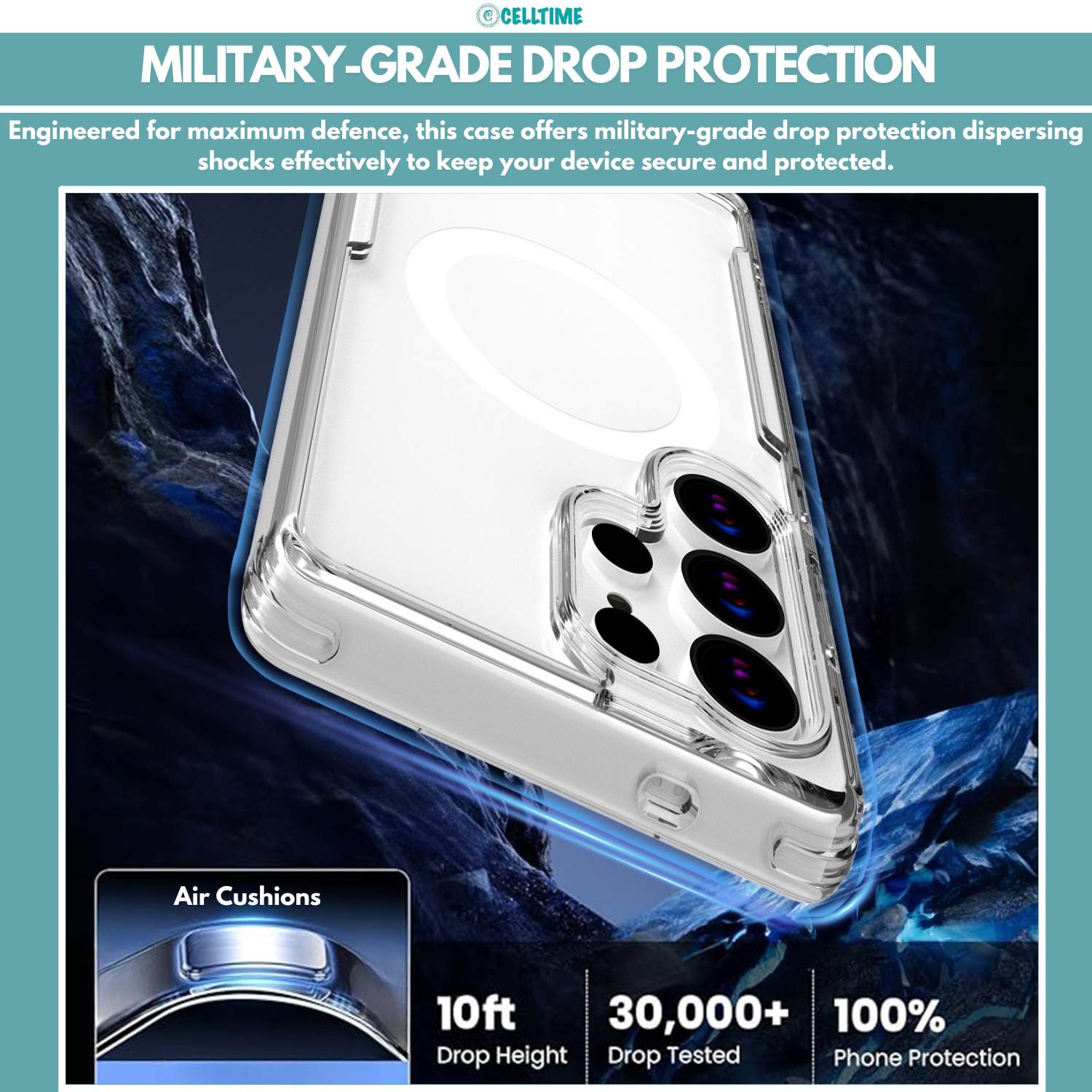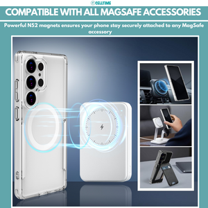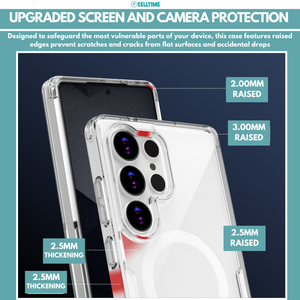 Experience the perfect balance of elite protection, crystal-clear aesthetics, and seamless MagSafe integration with the CellTime MagCase MagSafe Cover for Galaxy S25 / S25 Plus / S25 Ultra. Built to deliver military-grade durability, this case protects your iGalaxy S25/ S25 Plus/ S25 Ultra while showcasing its original design. Engineered with advanced materials and innovative technology, it offers complete peace of mind without adding unnecessary bulk.